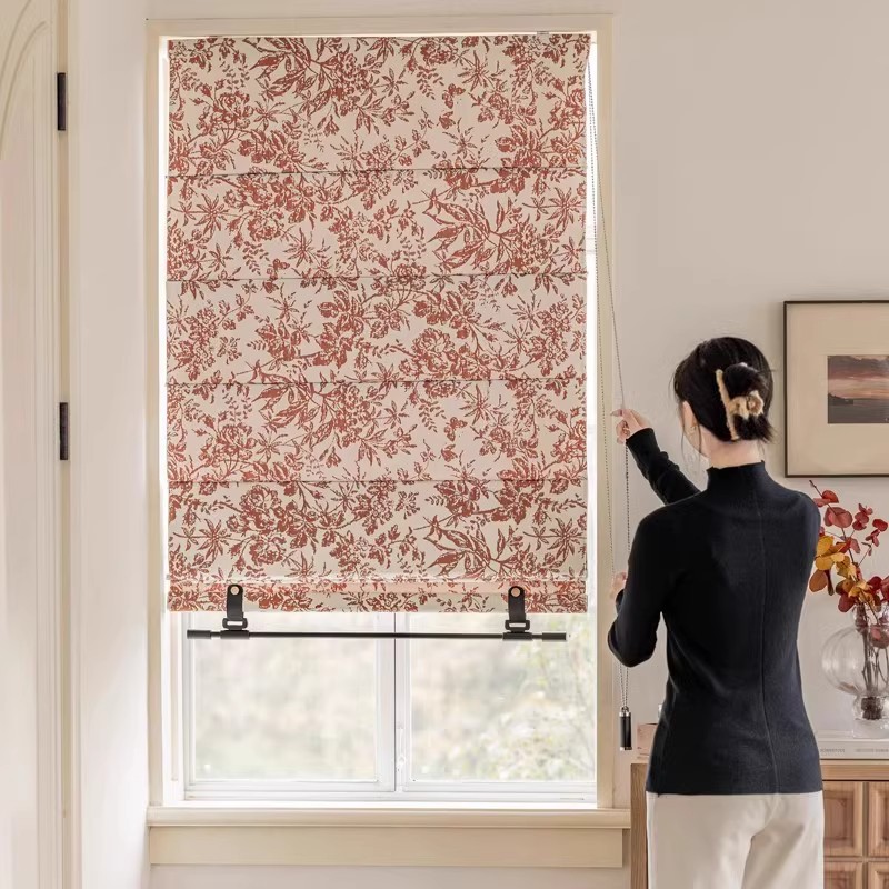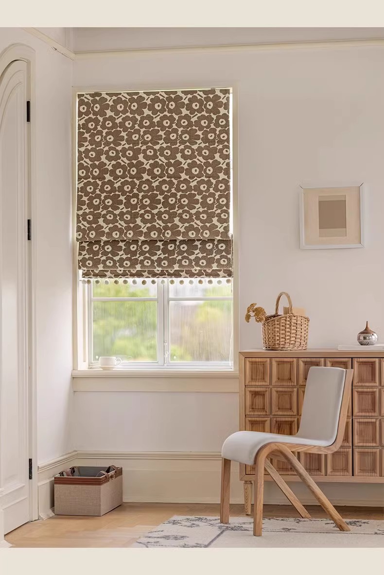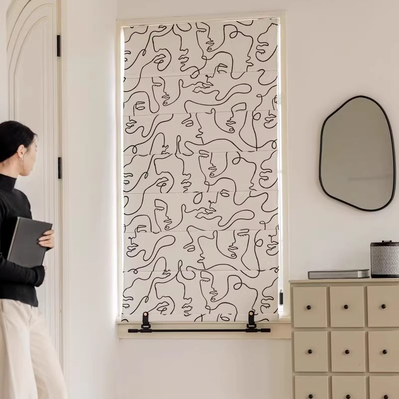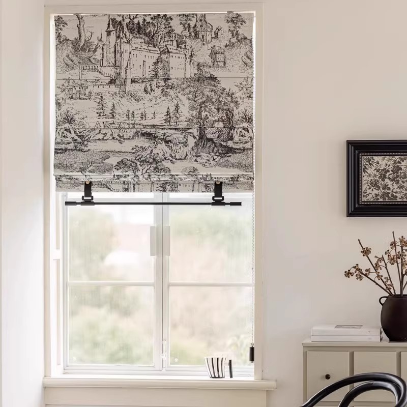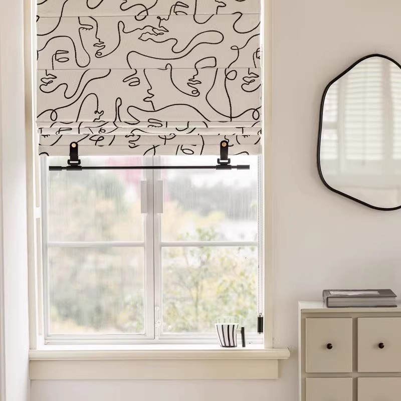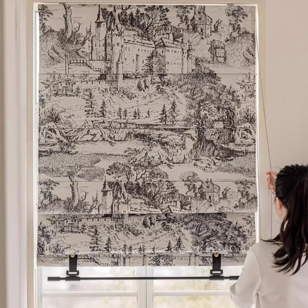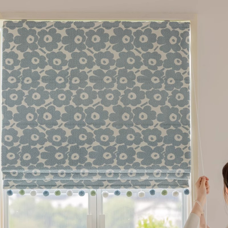 북유럽 스타일 차광 프렌치 스타일 쉐닐 로마 커튼 소녀 침실 거실 자카드 도어 커튼 원단 롤 커튼