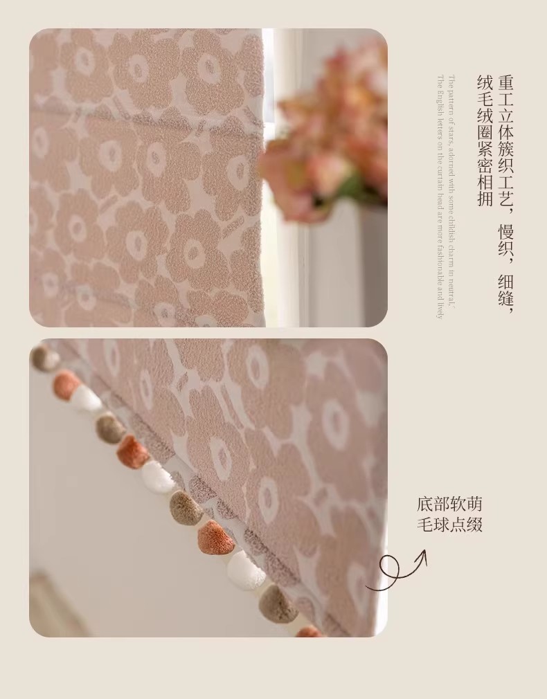 북유럽 스타일 차광 프렌치 스타일 쉐닐 로마 커튼 소녀 침실 거실 자카드 도어 커튼 원단 롤 커튼스토어 가기
