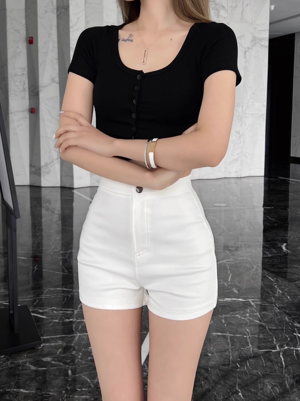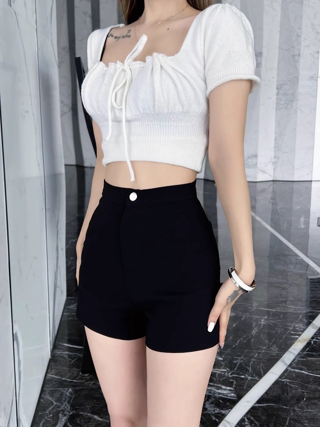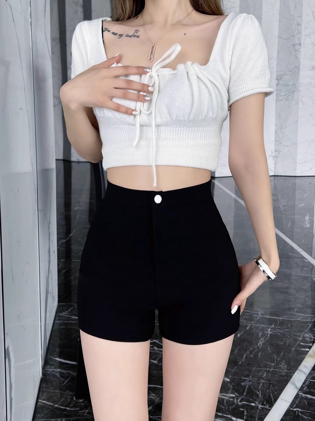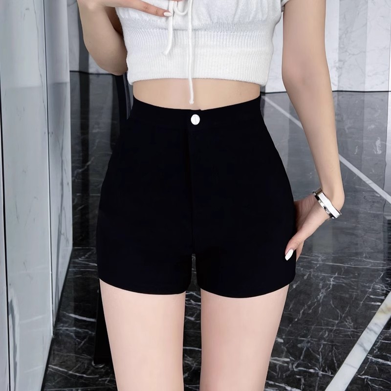여름 여성을 위한 블랙 하이웨이스트 수트반바지, 슬림하고 섹시한 힙커버 팬츠, 핫걸 스타일, 슬림핏, 쁘띠 아우터 핫팬츠