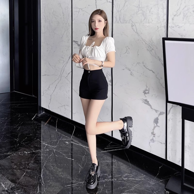 여름 여성을 위한 블랙 하이웨이스트 수트반바지, 슬림하고 섹시한 힙커버 팬츠, 핫걸 스타일, 슬림핏, 쁘띠 아우터 핫팬츠스토어 가기