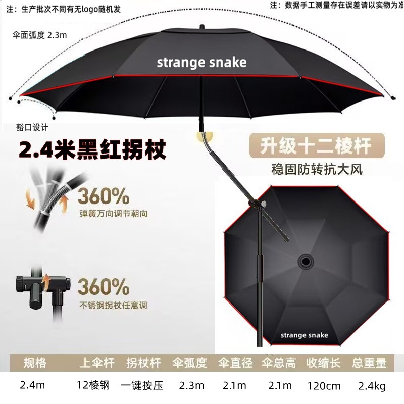 • [새로운 프레스 목발 우산] 모든 강철 검정색 접착제 강화 2.4m 검정색과 빨간색 [Hui Er] 업그레이드 버전