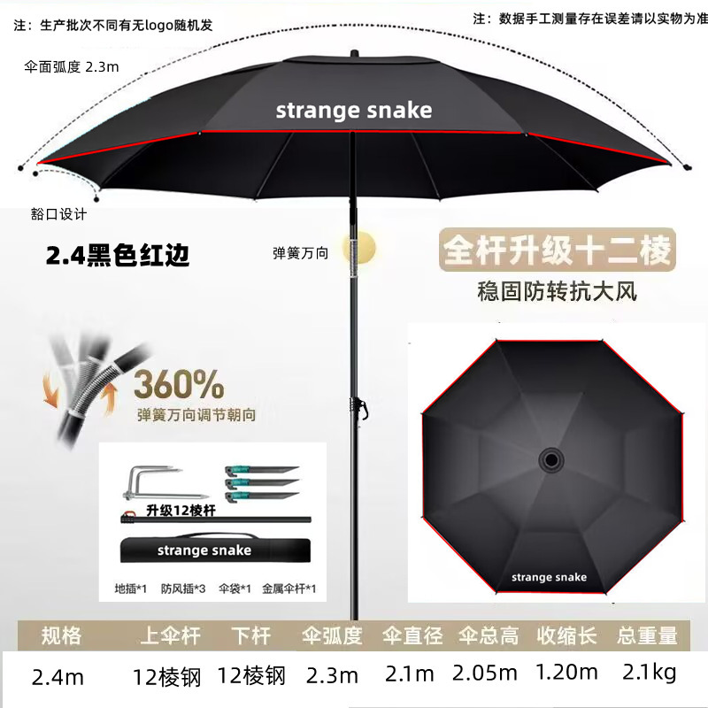 • 강화된 전체 막대 12각 강철 자외선 차단제 및 차양 검정색 플라스틱 2.4m 검정색 및 빨간색 [Hui'er] 업그레이드 버전