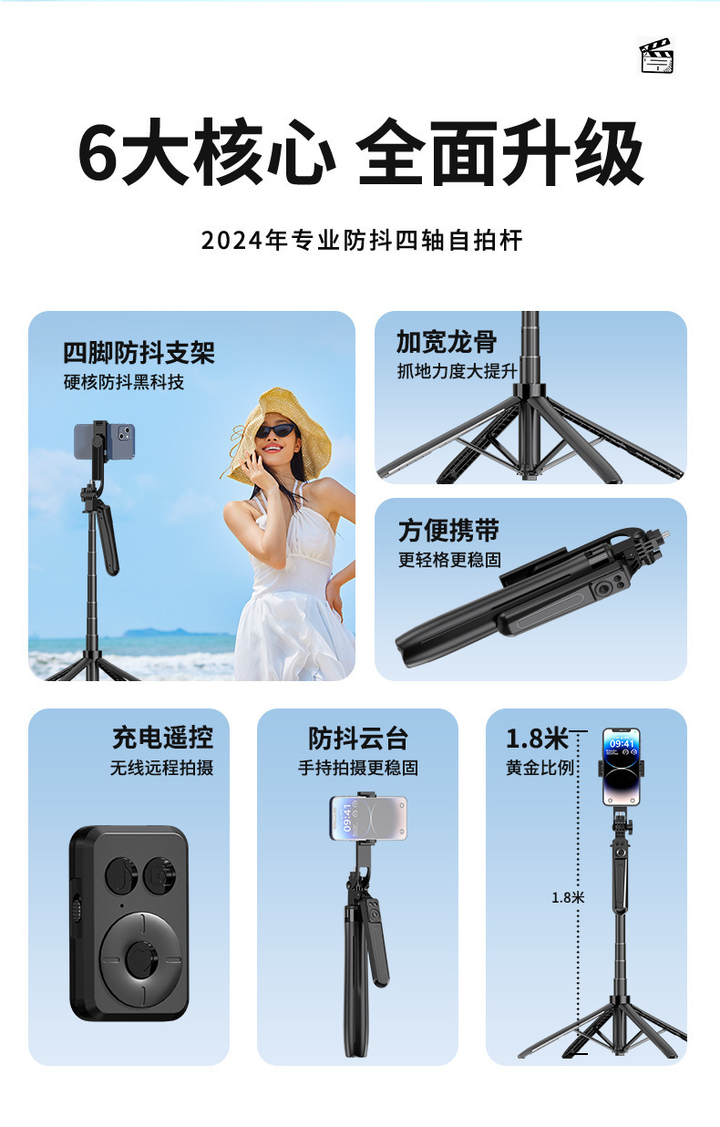 A17 휴대 전화 셀카 스틱 2.16m 회전 라이브 방송 촬영 손떨림 방지 휴대용 휴대용 다기능 4 다리 스탠드