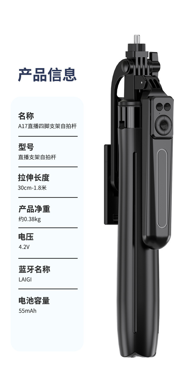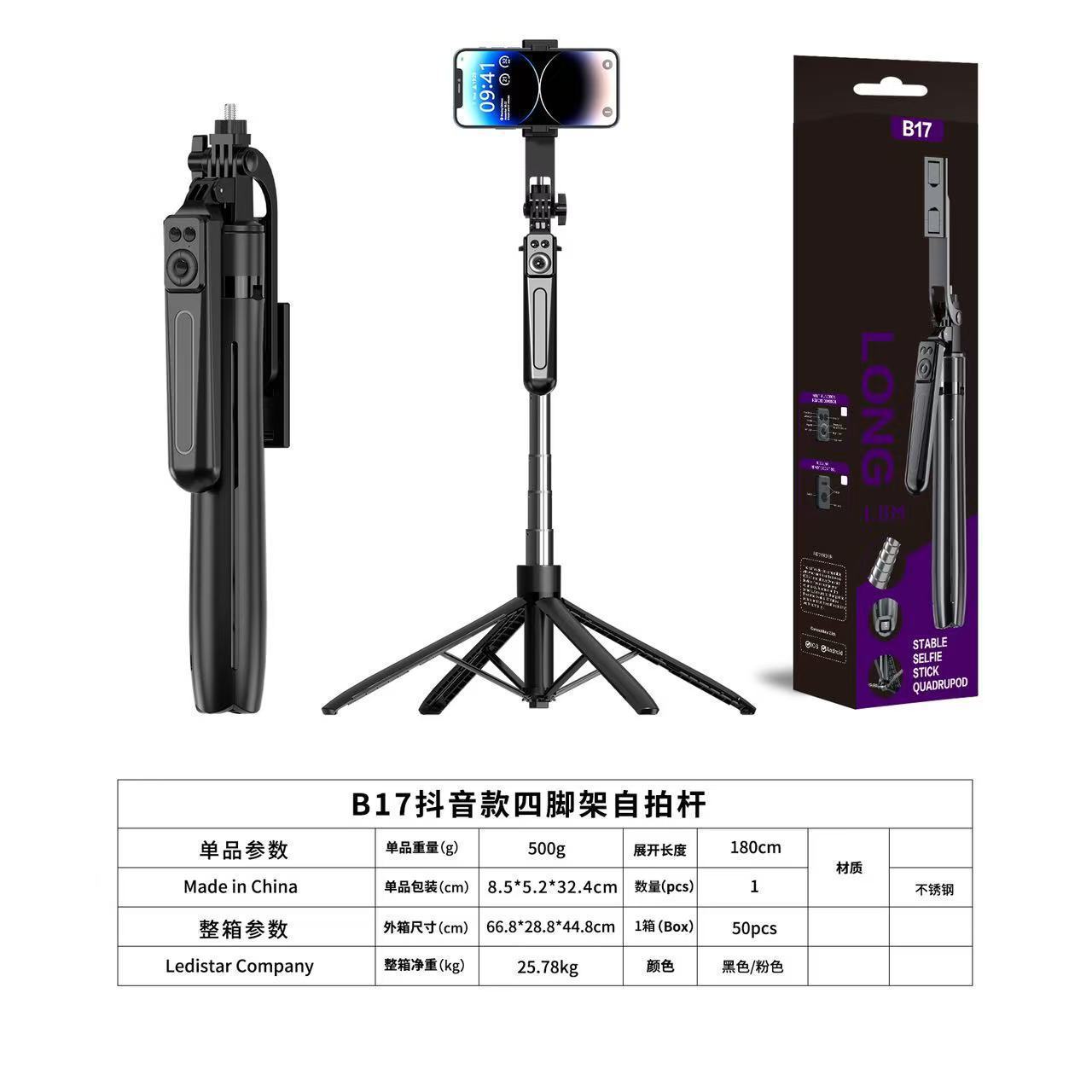 A17 휴대 전화 셀카 스틱 2.16m 회전 라이브 방송 촬영 손떨림 방지 휴대용 휴대용 다기능 4 다리 스탠드스토어 가기