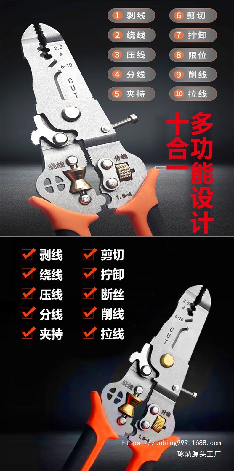 • 10-in-1 범용 고강도 와이어 스트리퍼