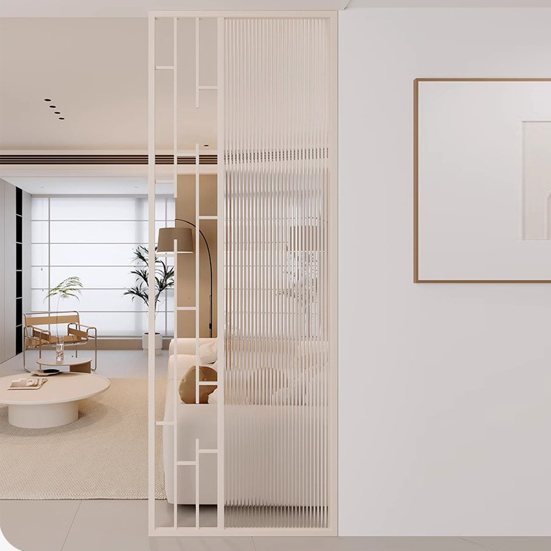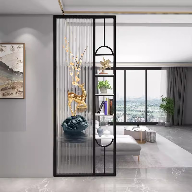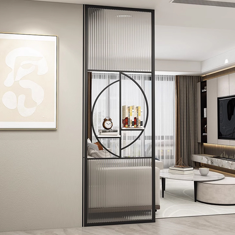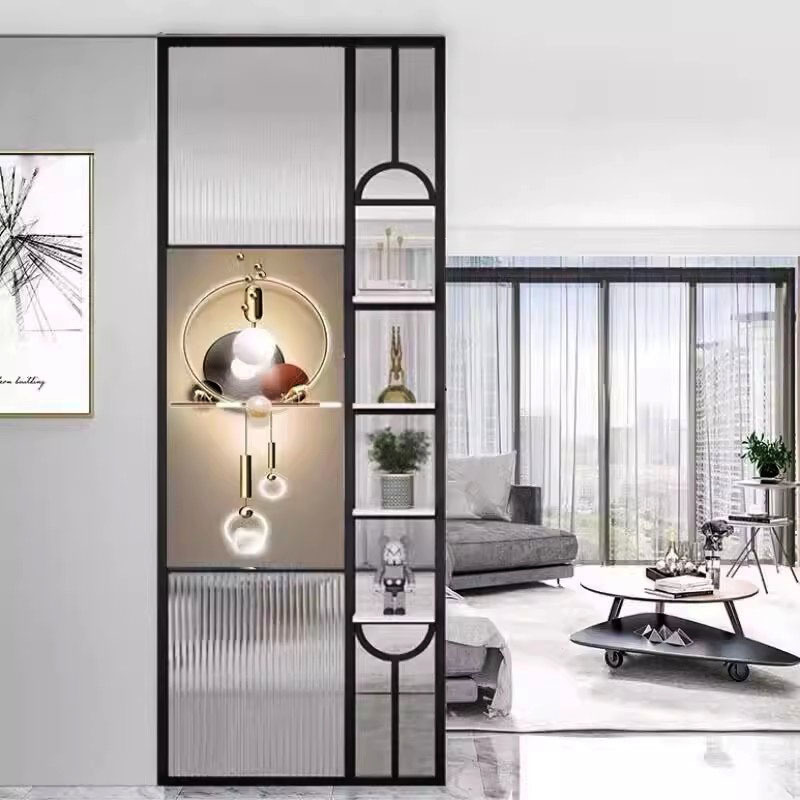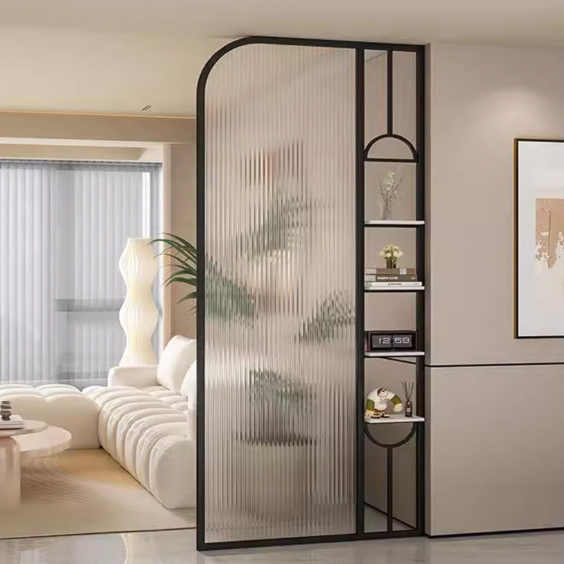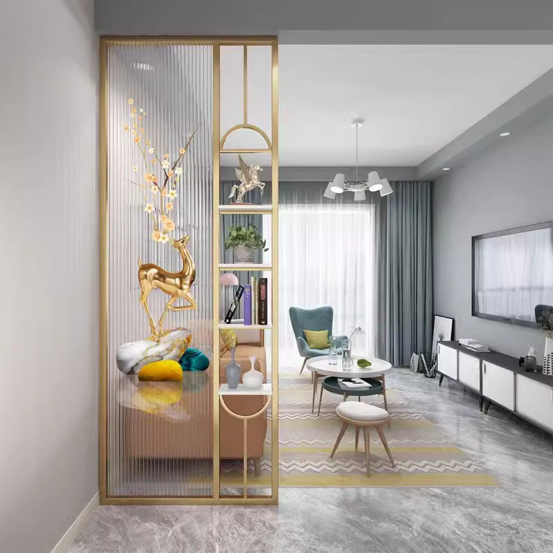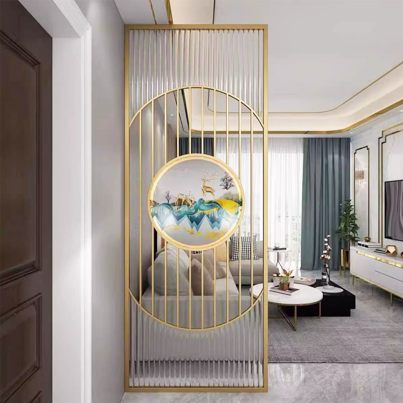 거실은 문을 향하고 있으며, 아름다운 아치형 유리 스크린 파티션이 간단하고 가벼운 고급스러운 스테인레스 스틸로 장식되어 입구를 가리고 있습니다.스토어 가기