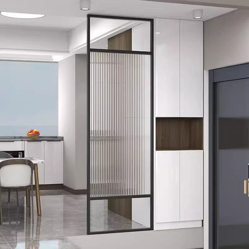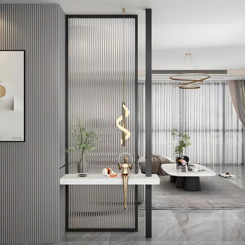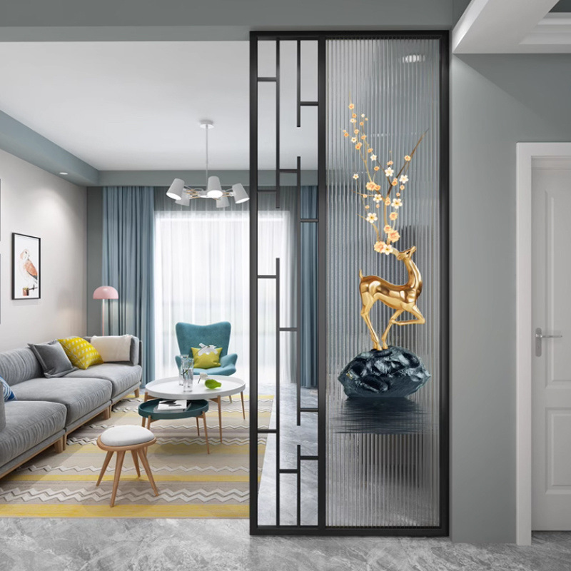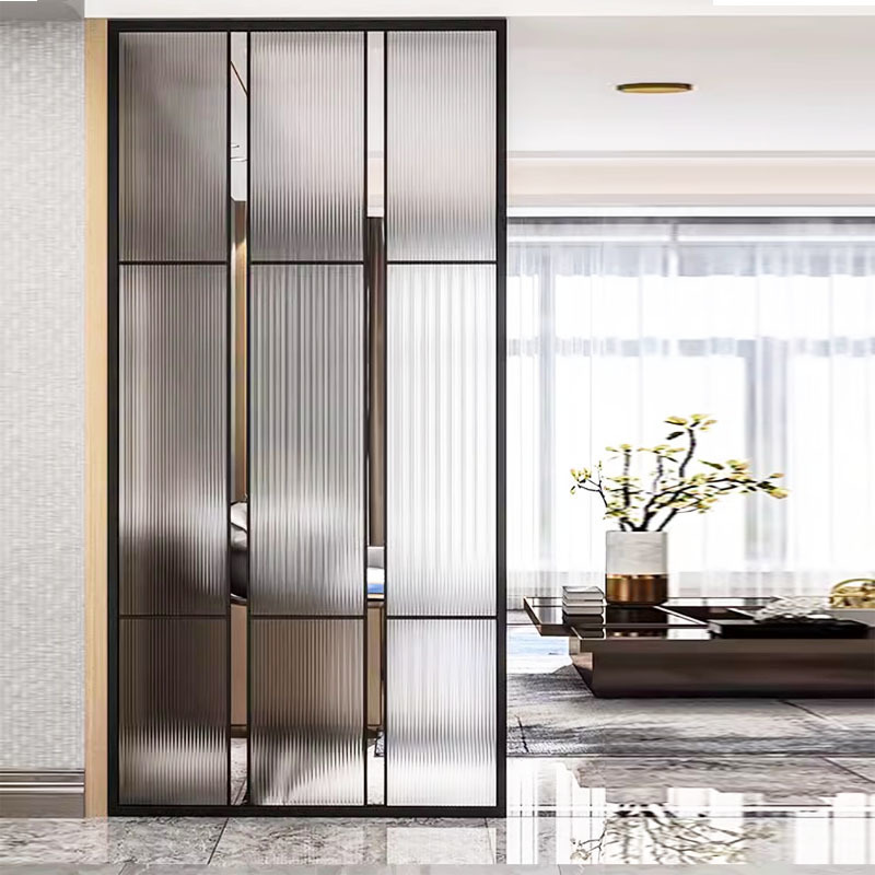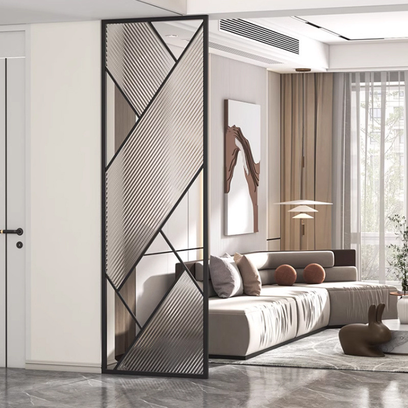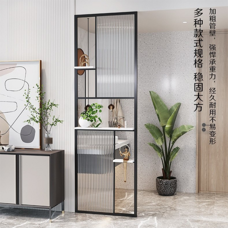 거실은 문을 향하고 있으며, 아름다운 아치형 유리 스크린 파티션이 간단하고 가벼운 고급스러운 스테인레스 스틸로 장식되어 입구를 가리고 있습니다.스토어 가기