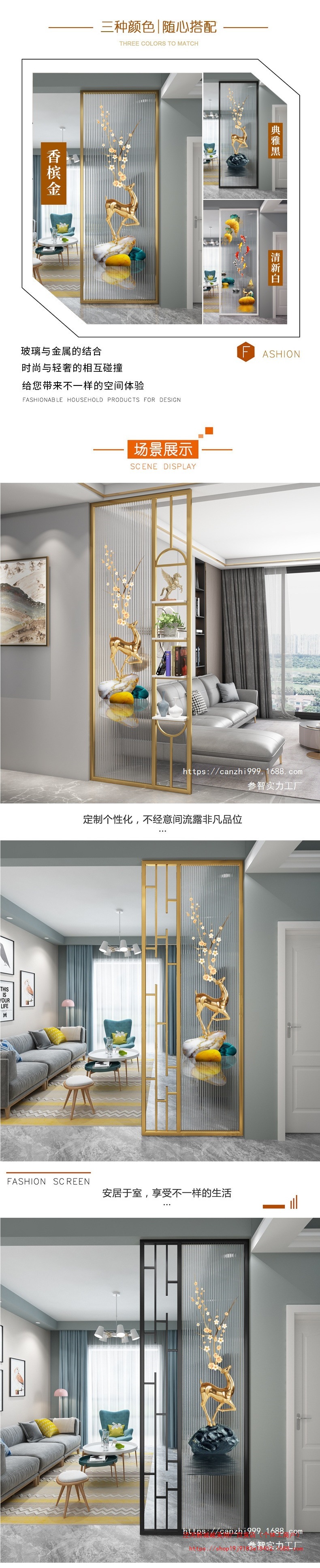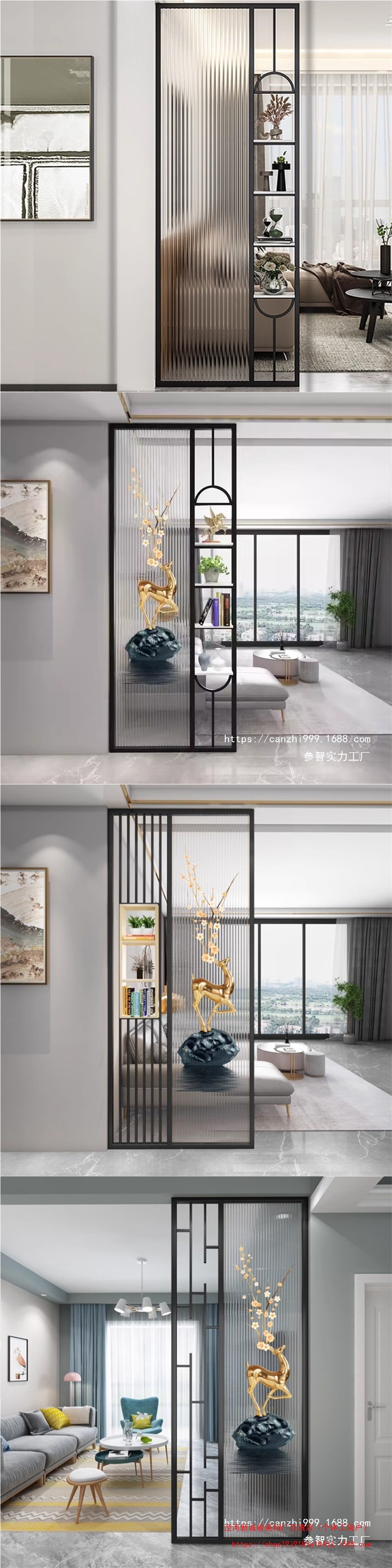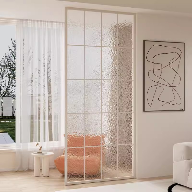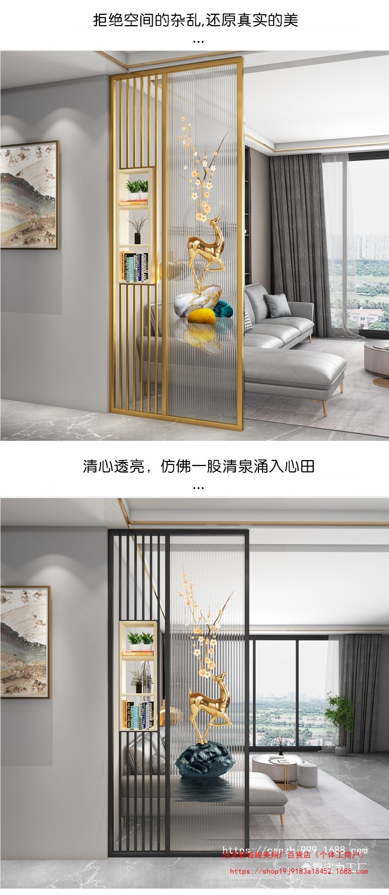 거실은 문을 향하고 있으며, 아름다운 아치형 유리 스크린 파티션이 간단하고 가벼운 고급스러운 스테인레스 스틸로 장식되어 입구를 가리고 있습니다.스토어 가기