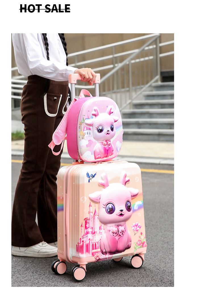 어린이 트롤리 케이스 새로운 대용량 만화 귀여운 범용 휠 침묵 가방 세트 소녀 가방