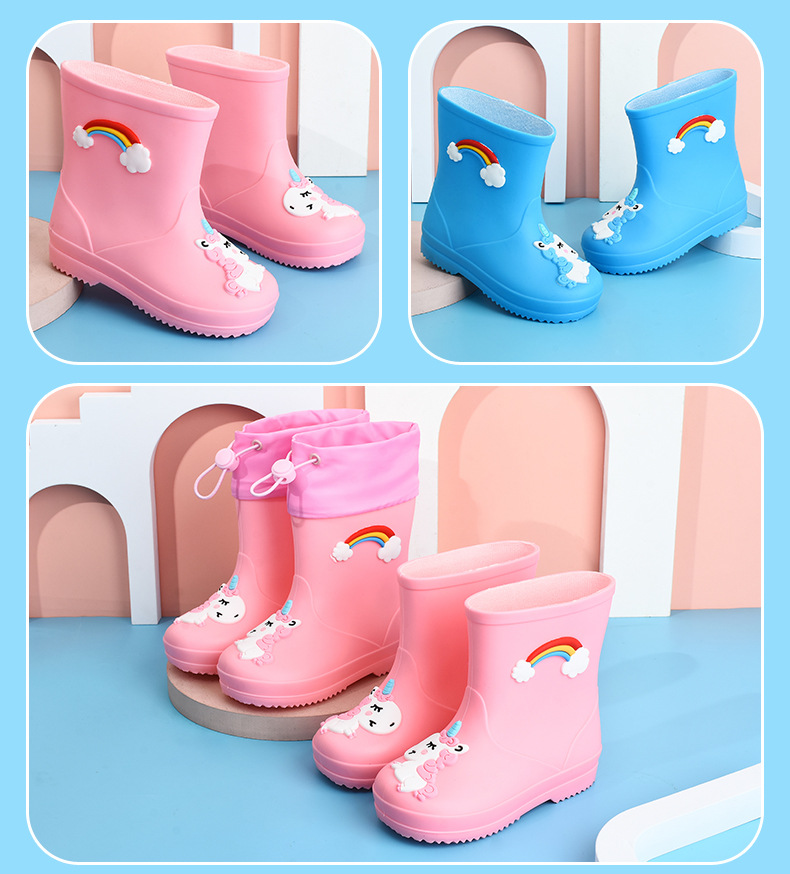 어린이 장화, 경량, 미끄럼 방지, 중소형 어린이를 위한 탄성 탈착식 라이너, 귀여운 만화 소년 소녀 장화스토어 가기