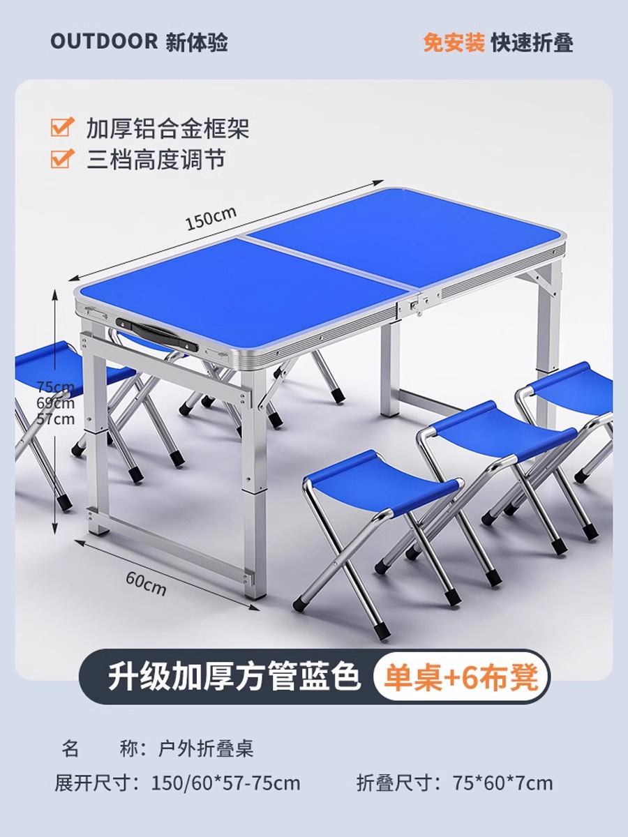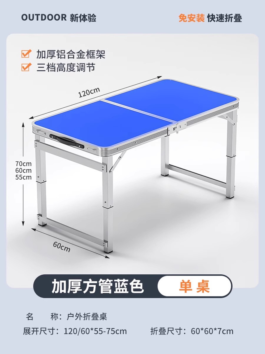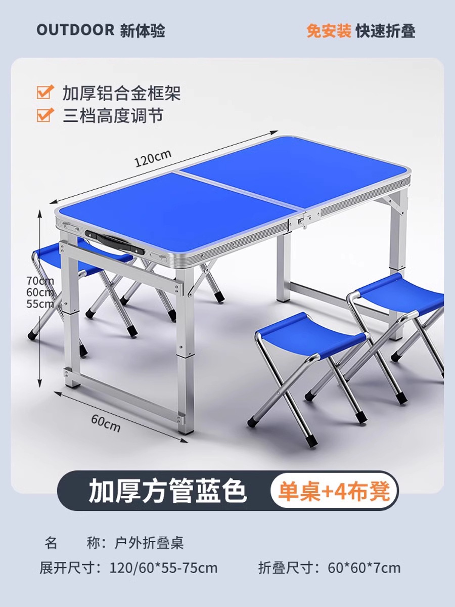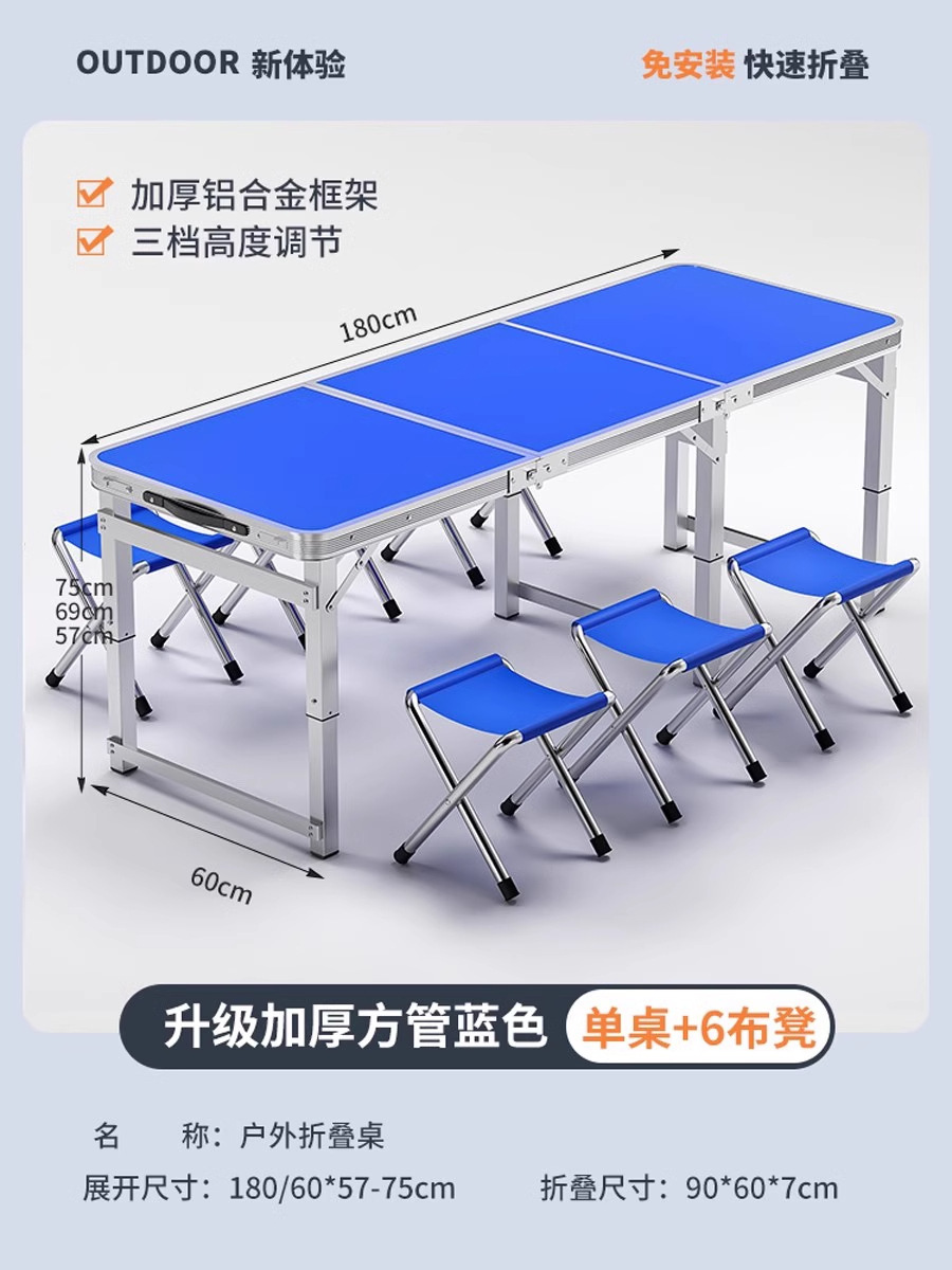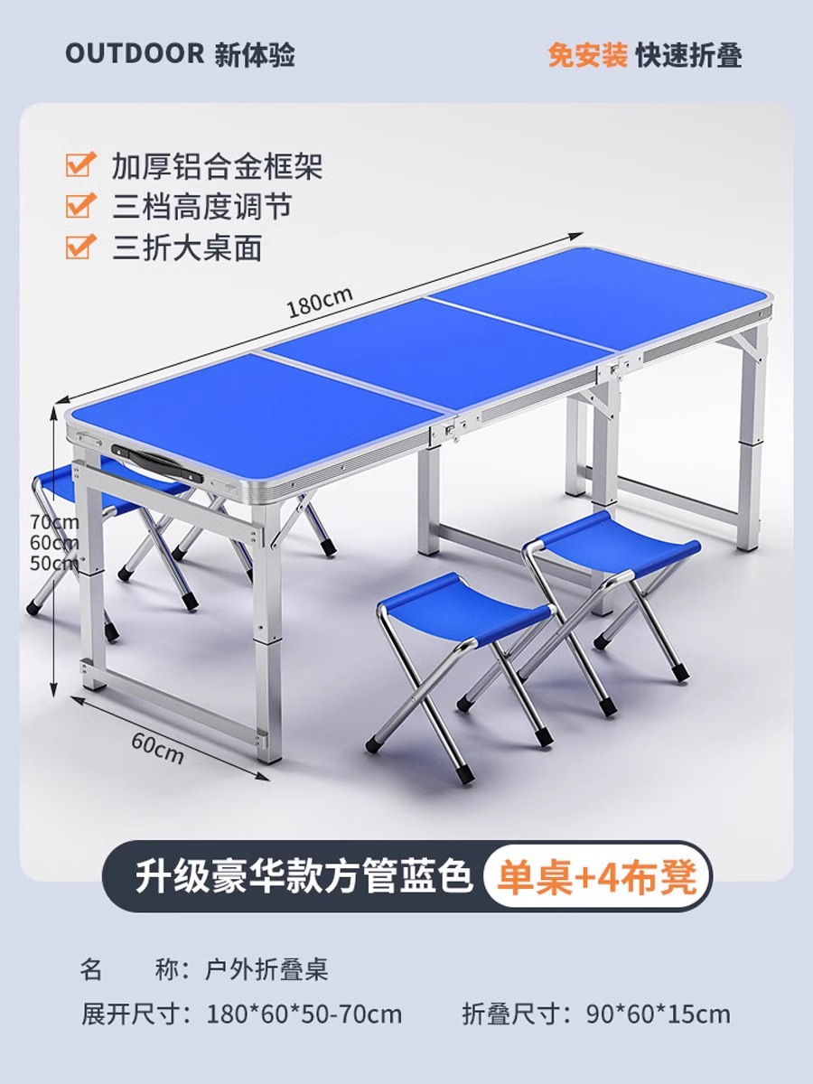 • [매우 안정적인 대형 사각 튜브] 180 파란색 + 알루미늄 스툴 4개 - 우산 구멍이 필요한 경우 별도로 참고하세요.