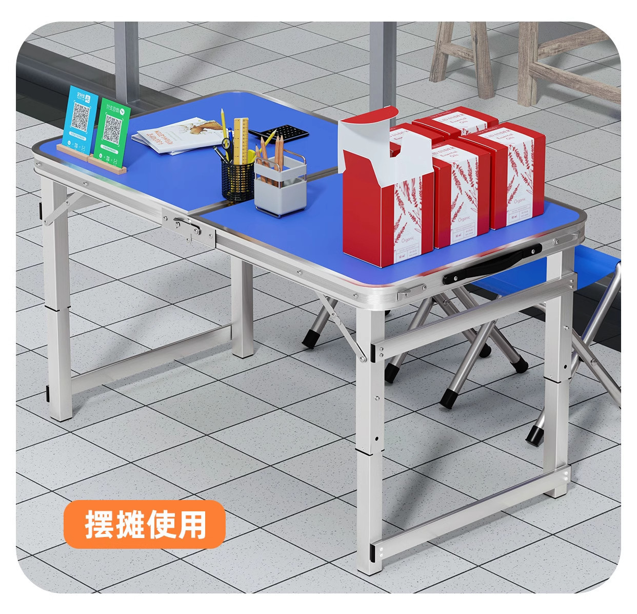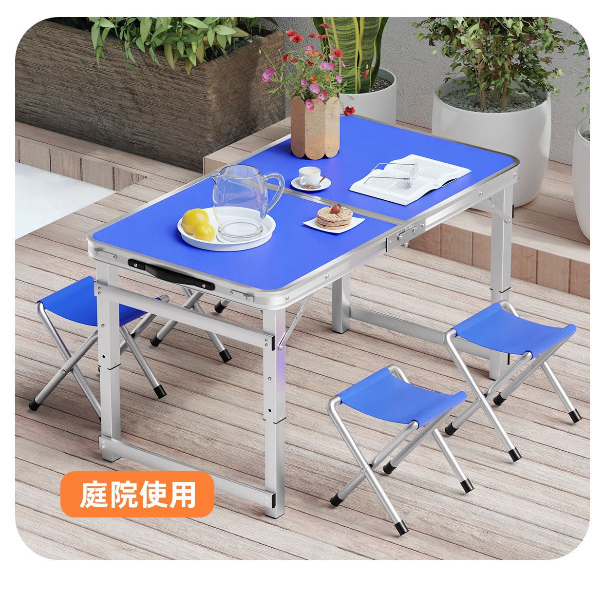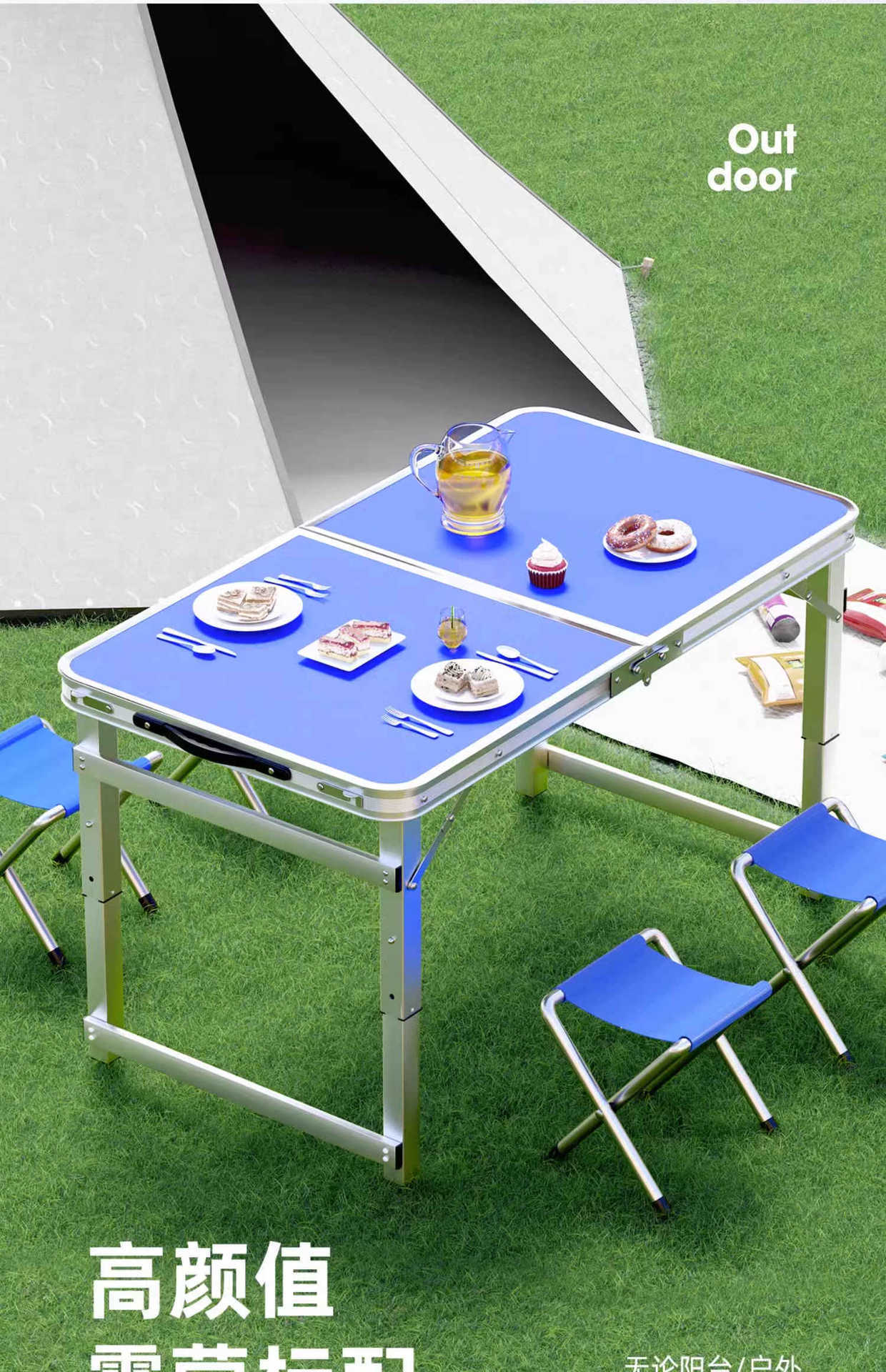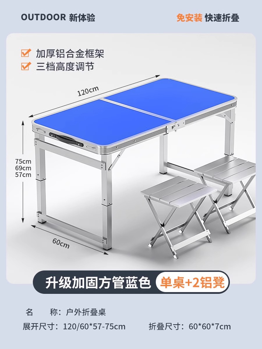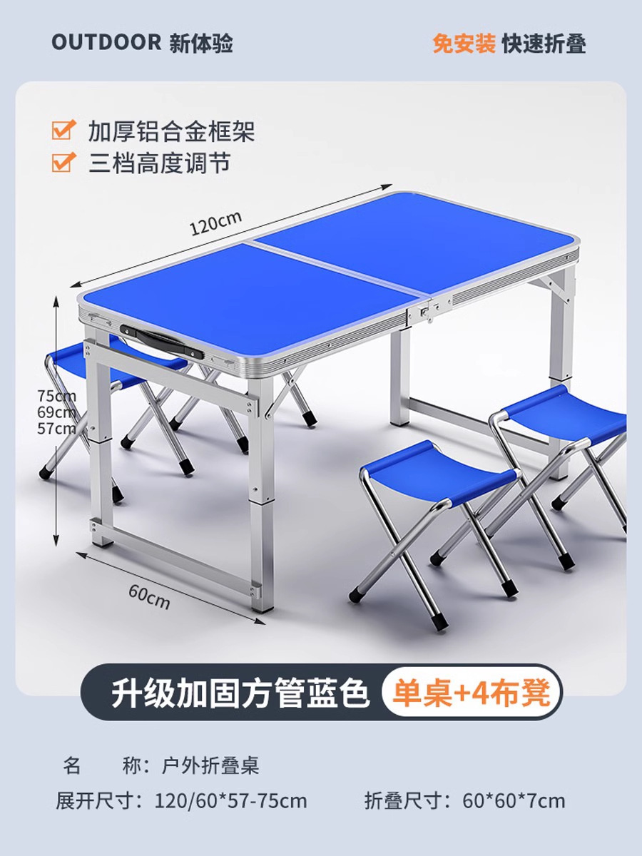 • [매우 안정적인 대형 사각 튜브] 180 파란색 + 알루미늄 스툴 4개 - 우산 구멍이 필요한 경우 별도로 참고하세요.