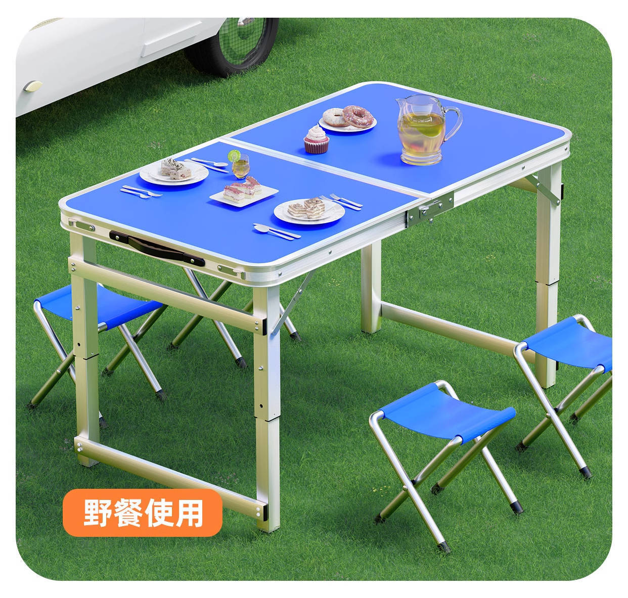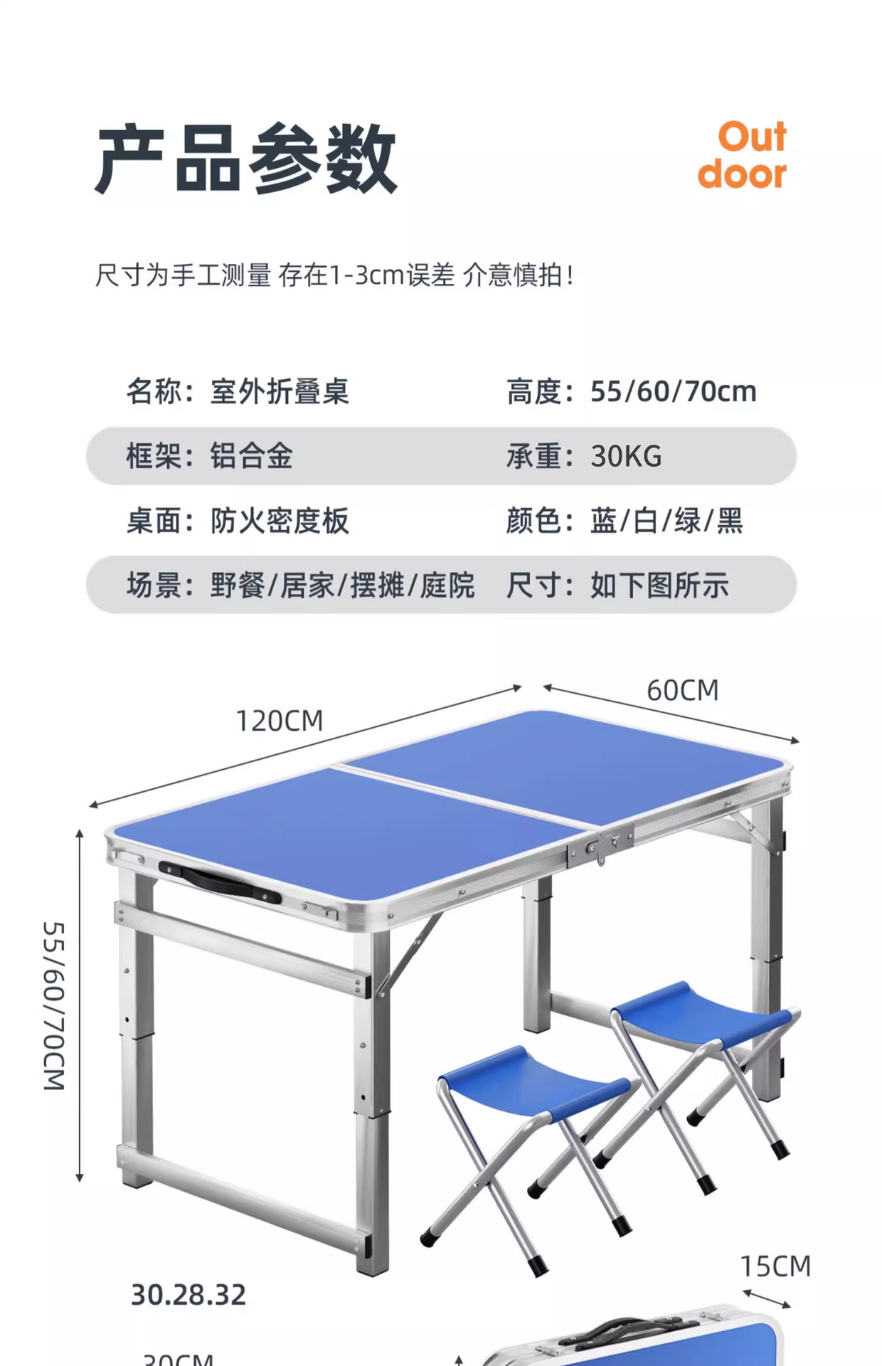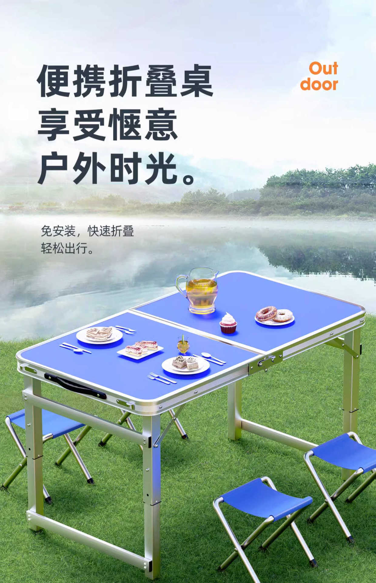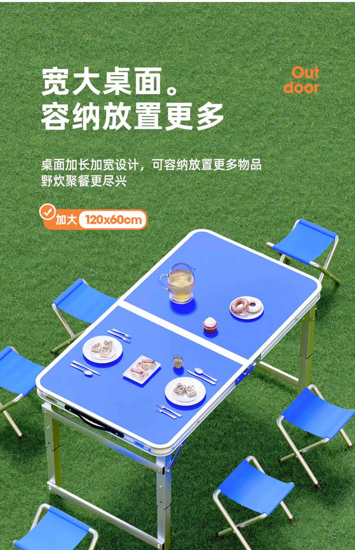 • [매우 안정적인 대형 사각 튜브] 180 파란색 + 알루미늄 스툴 4개 - 우산 구멍이 필요한 경우 별도로 참고하세요.