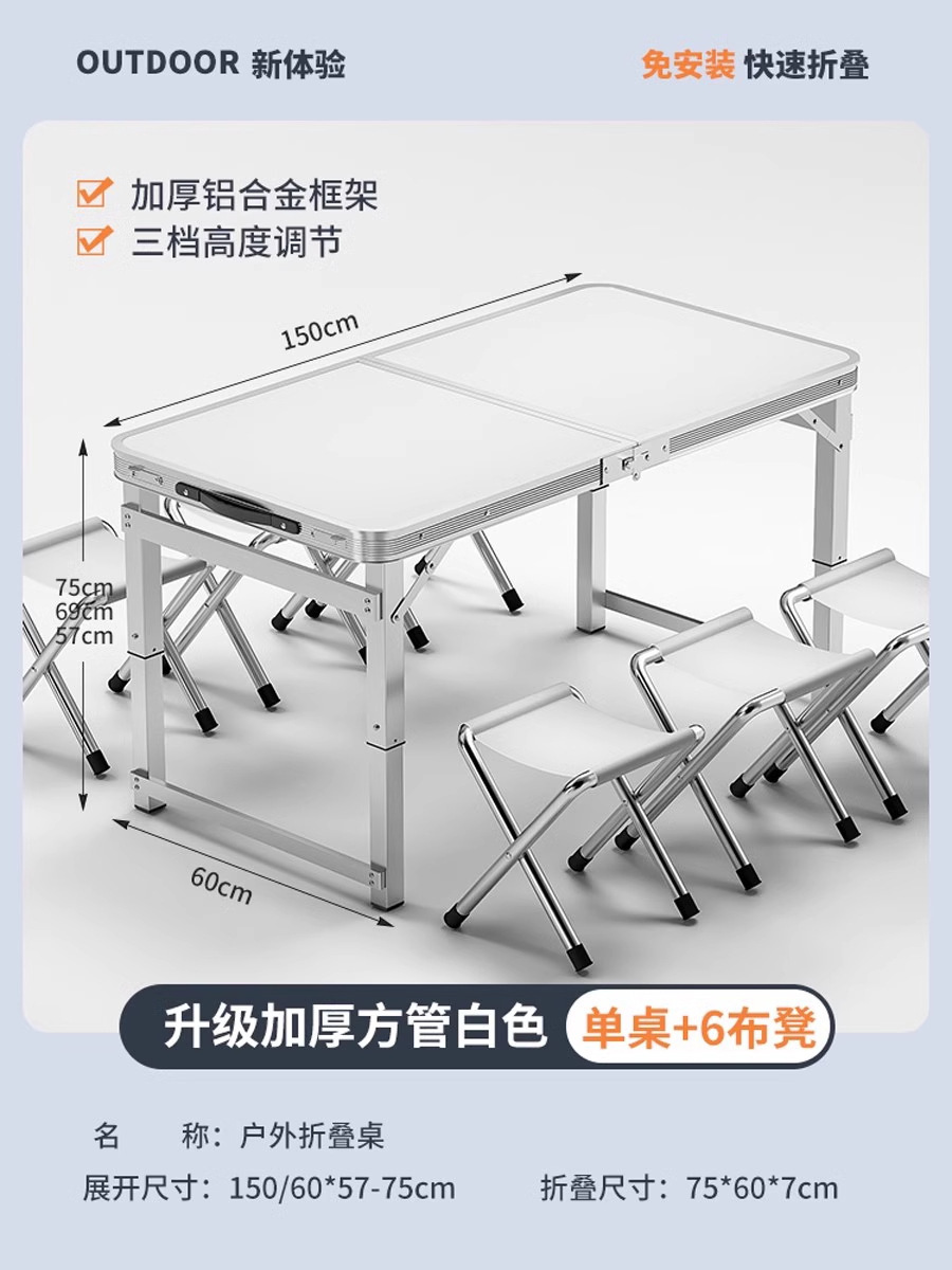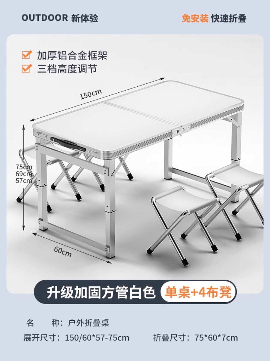 • [매우 안정적인 대형 사각 튜브] 흰색 150개 + 알루미늄 스툴 4개 - 우산 구멍이 필요한 경우 별도로 참고하세요.