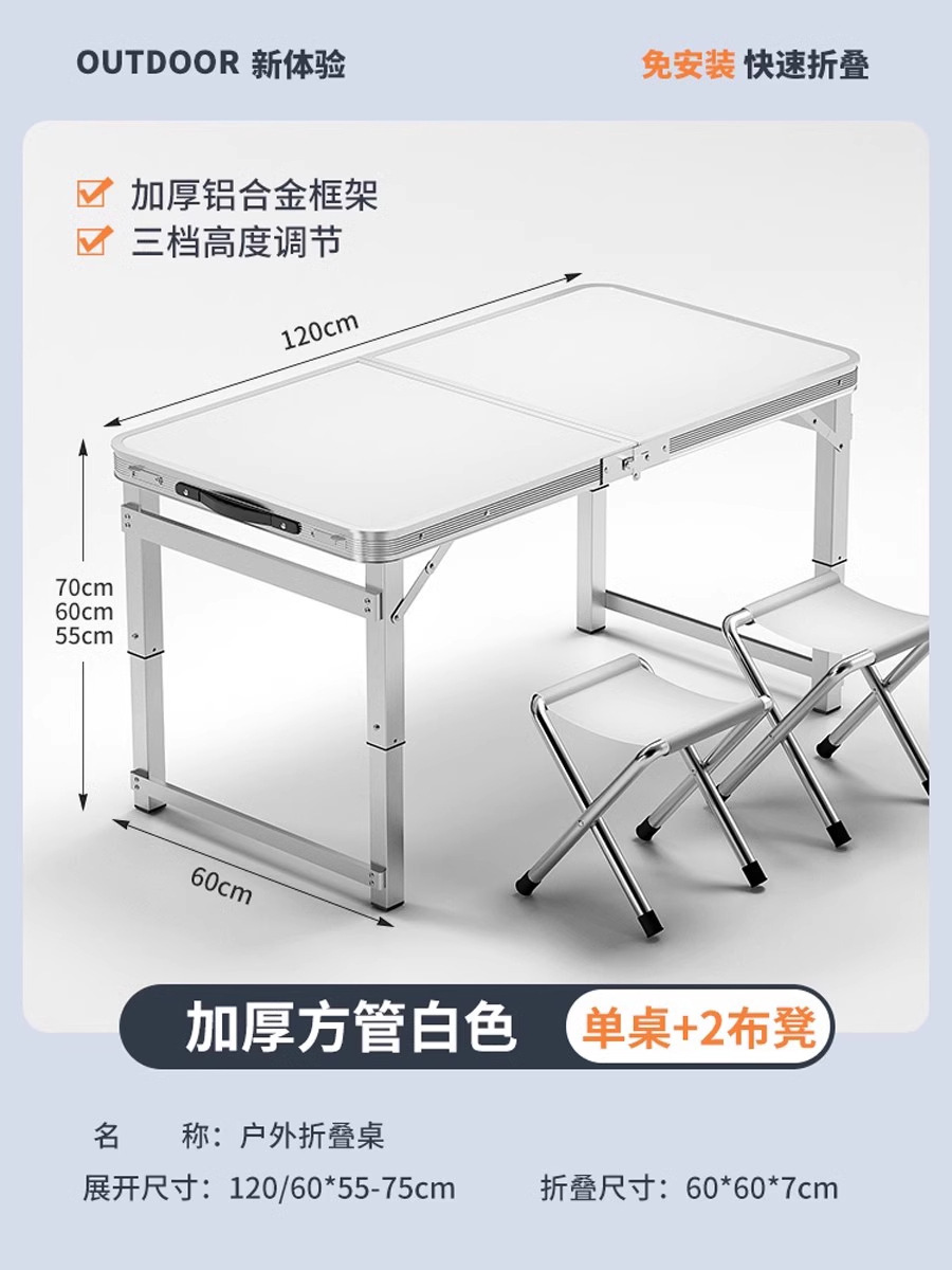 • [매우 안정적인 대형 사각 튜브] 흰색 120개 + 알루미늄 스툴 4개 - 우산 구멍이 필요한 경우 별도로 참고하세요.