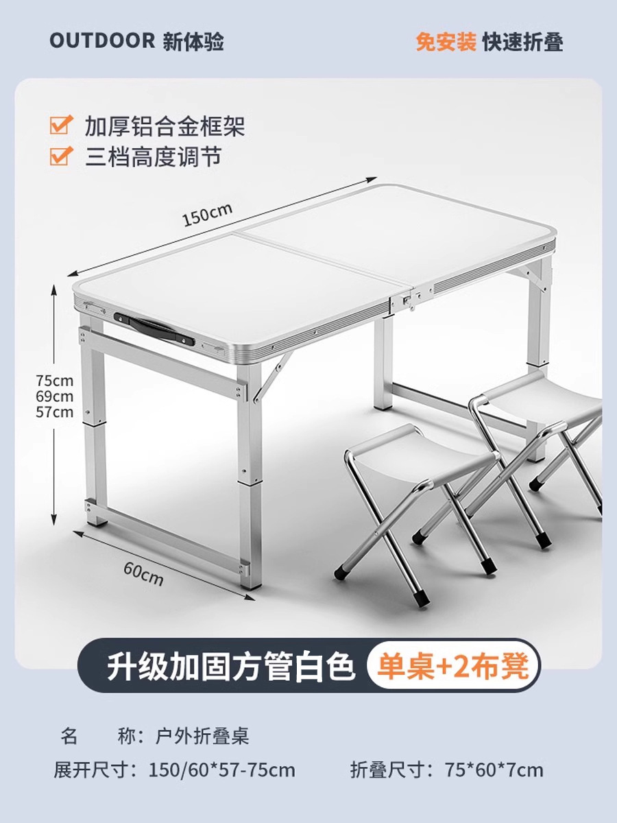 • [매우 안정적인 대형 사각 튜브] 흰색 150개 + 알루미늄 스툴 2개 - 우산 구멍이 필요한 경우 별도로 참고하세요.