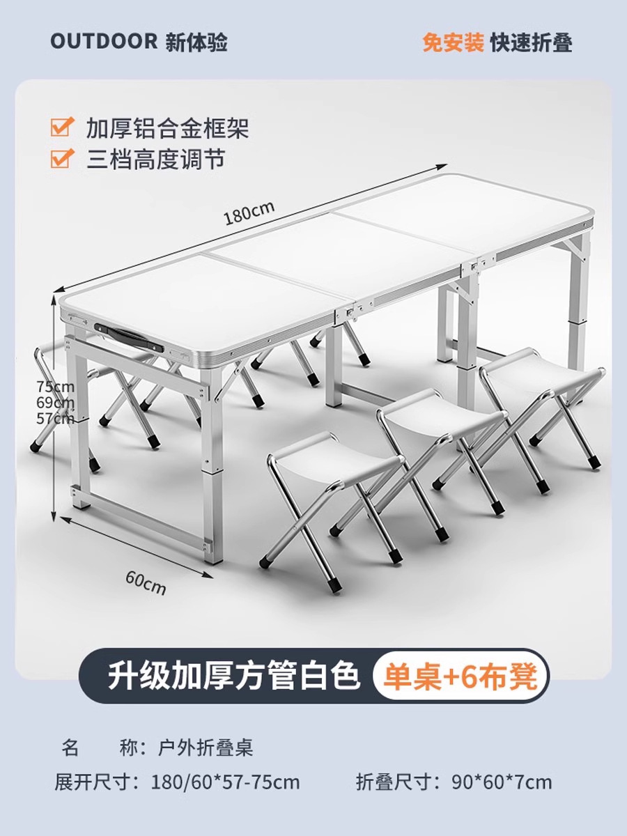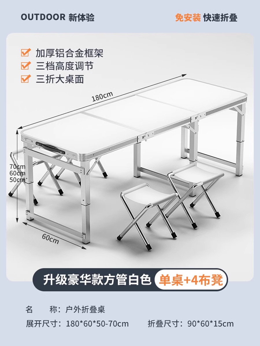 • [매우 안정적인 대형 사각 튜브] 흰색 180개 + 알루미늄 스툴 4개 - 우산 구멍이 필요한 경우 별도로 참고하세요.