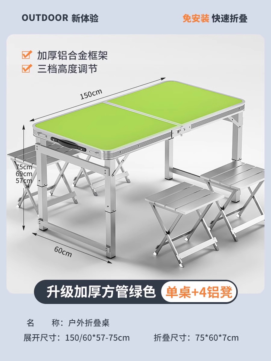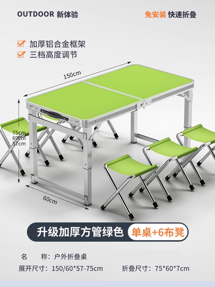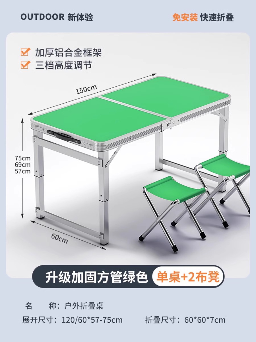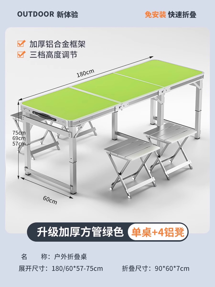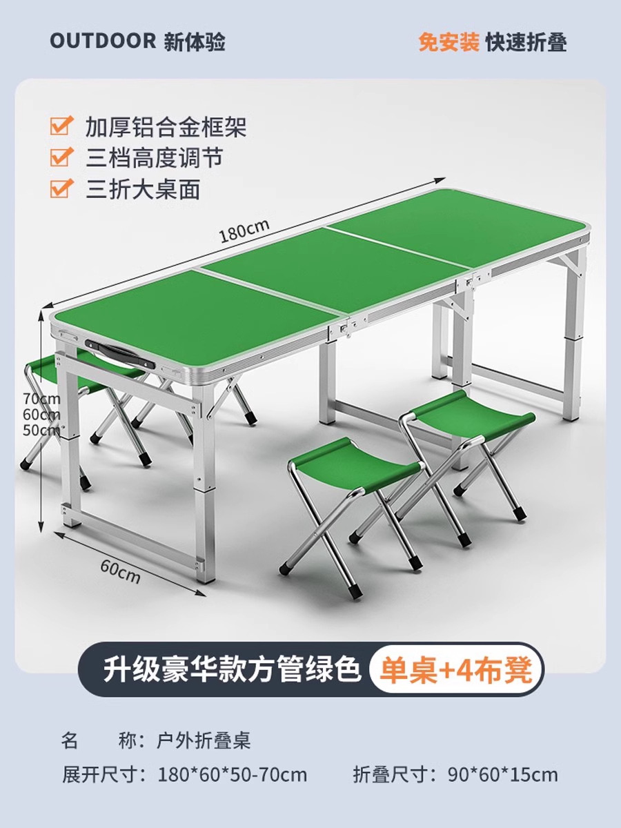 • [매우 안정적인 대형 사각 튜브] 180 녹색 + 알루미늄 스툴 4개 - 우산 구멍이 필요한 경우 별도로 참고하세요.