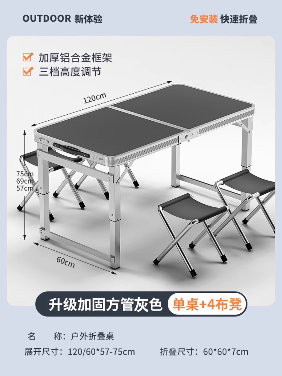 • [매우 안정적인 대형 사각 튜브] 회색 120개 + 알루미늄 스툴 4개 - 우산 구멍이 필요한 경우 별도로 참고하세요.