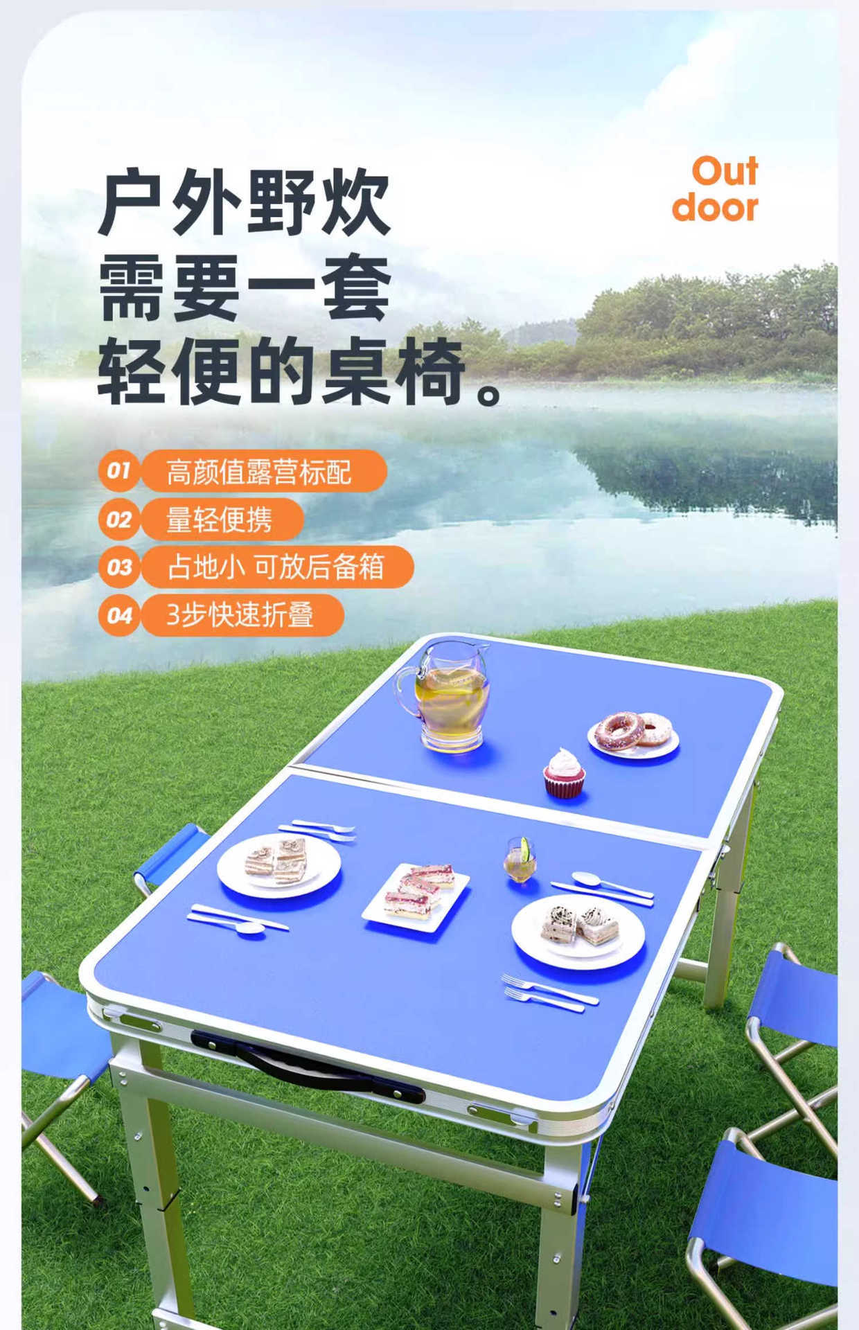 야외 접이식 테이블과 의자, 직사각형 휴대용 장식 접이식 테이블, 캠핑 테이블, 간단한 야외 식탁
