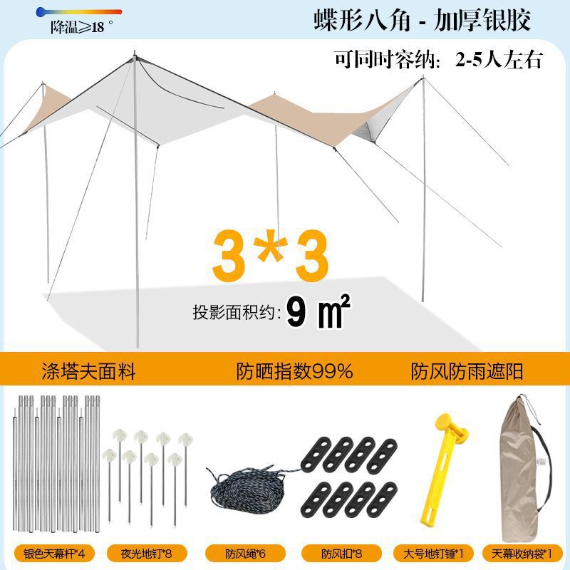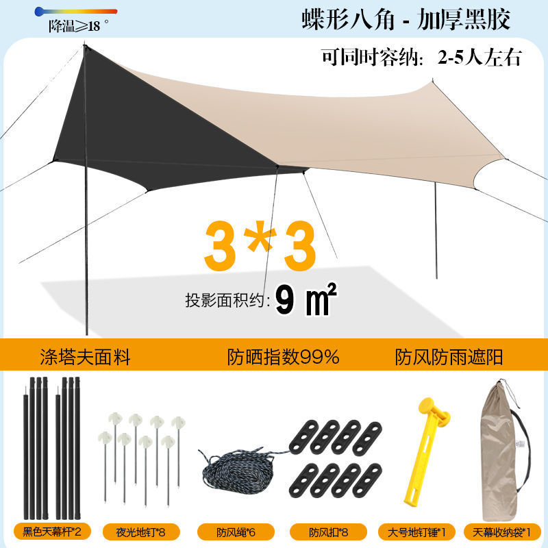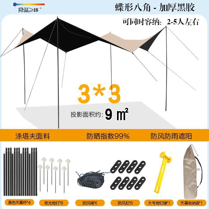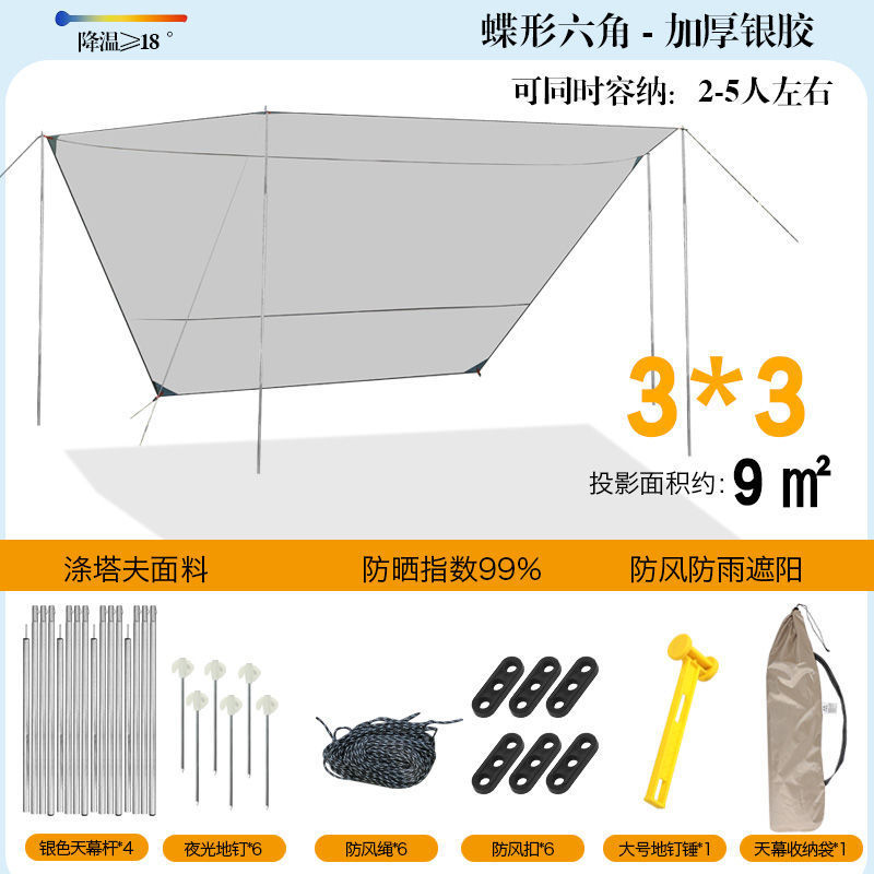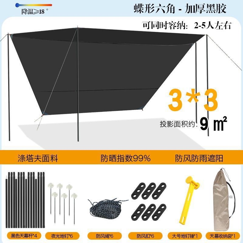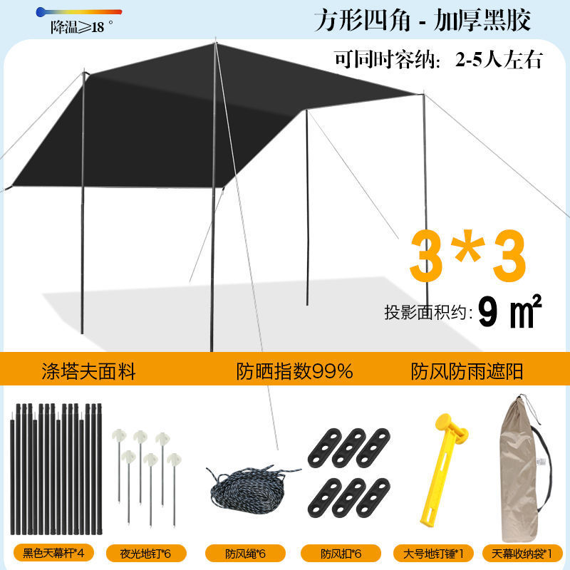 야외 캐노피 텐트 차양 두꺼운 실버 비닐 블랙 비닐 캐노피 방수 캐노피 캠핑 캠핑 피크닉 바베큐 피크닉