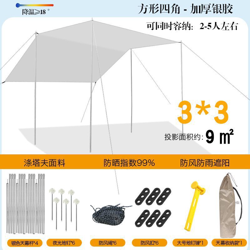 야외 캐노피 텐트 차양 두꺼운 실버 비닐 블랙 비닐 캐노피 방수 캐노피 캠핑 캠핑 피크닉 바베큐 피크닉스토어 가기