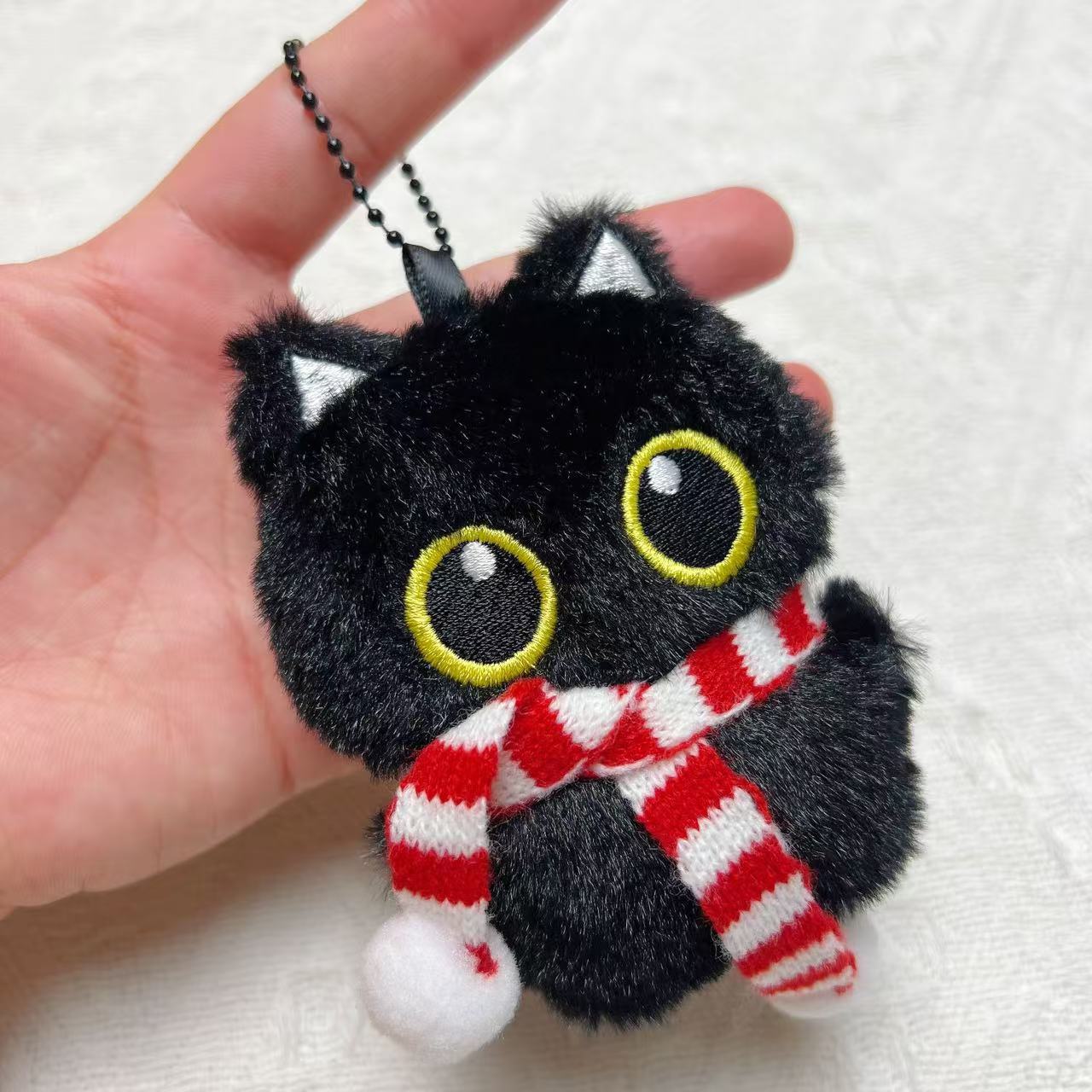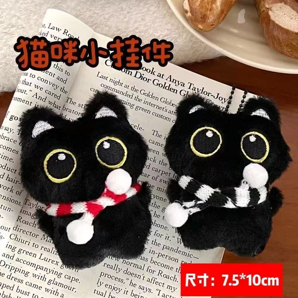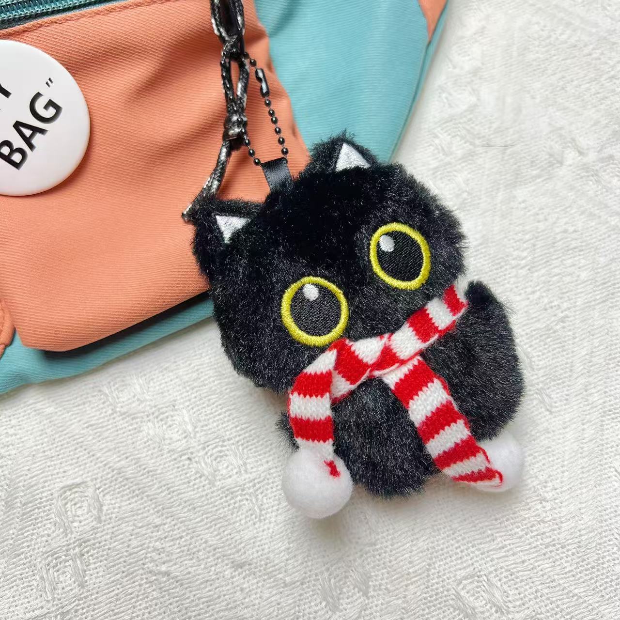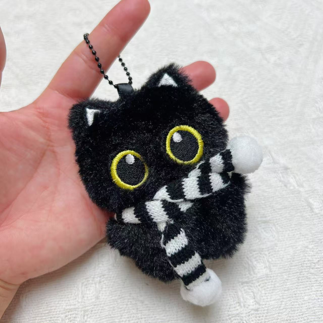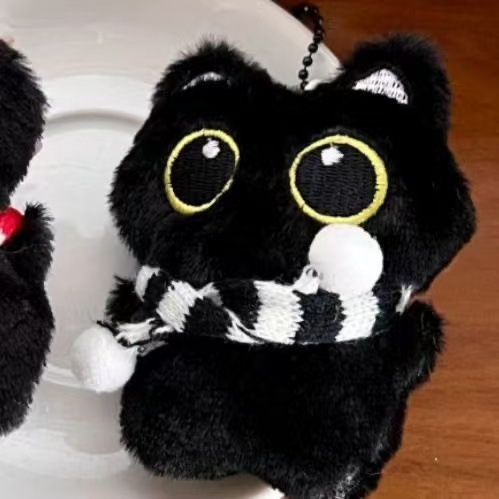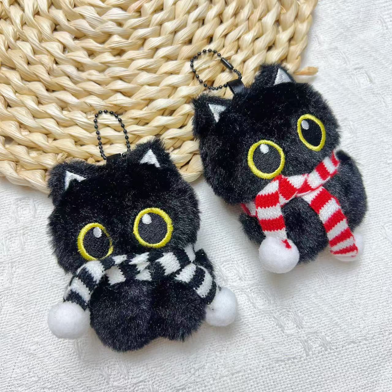 검은 고양이 인형 플러시 장난감 키체인, 고양이 가방 장식품, 여자친구를 위한 커플 선물, 삐걱거리는 소리가 난다.스토어 가기
