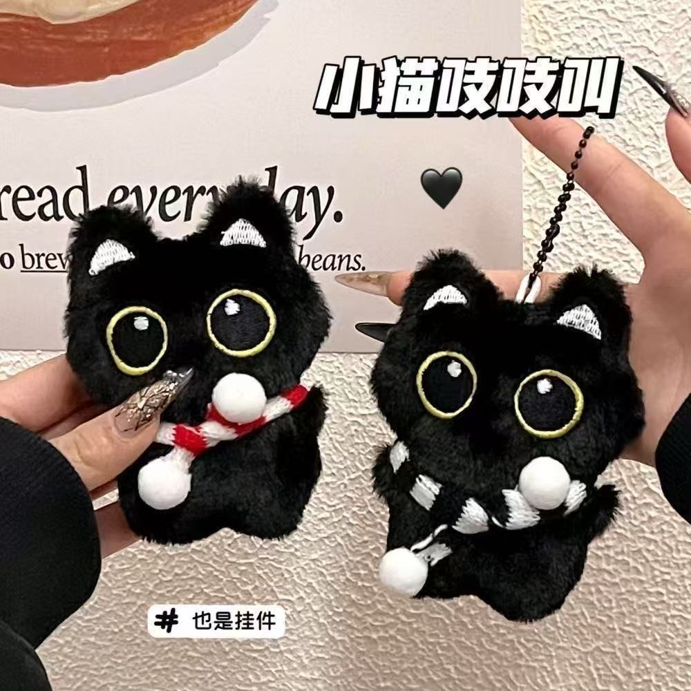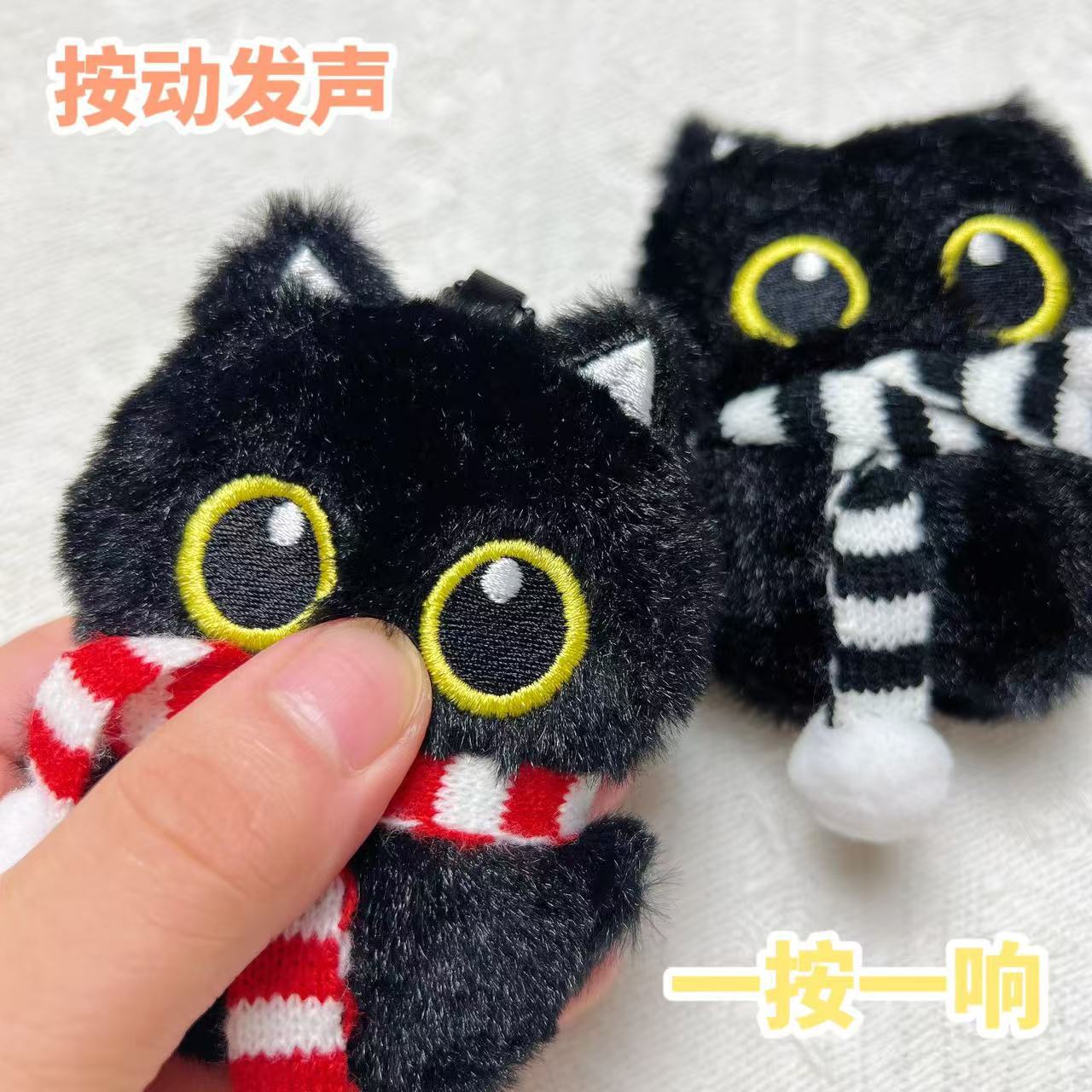 검은 고양이 인형 플러시 장난감 키체인, 고양이 가방 장식품, 여자친구를 위한 커플 선물, 삐걱거리는 소리가 난다.