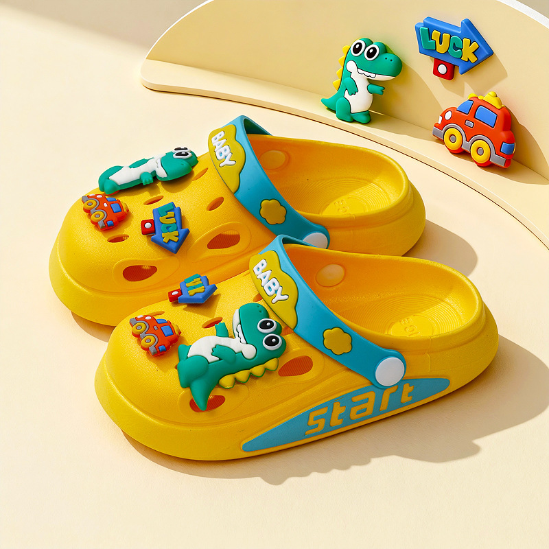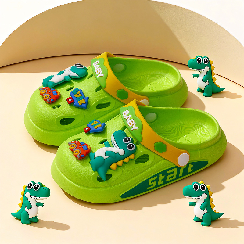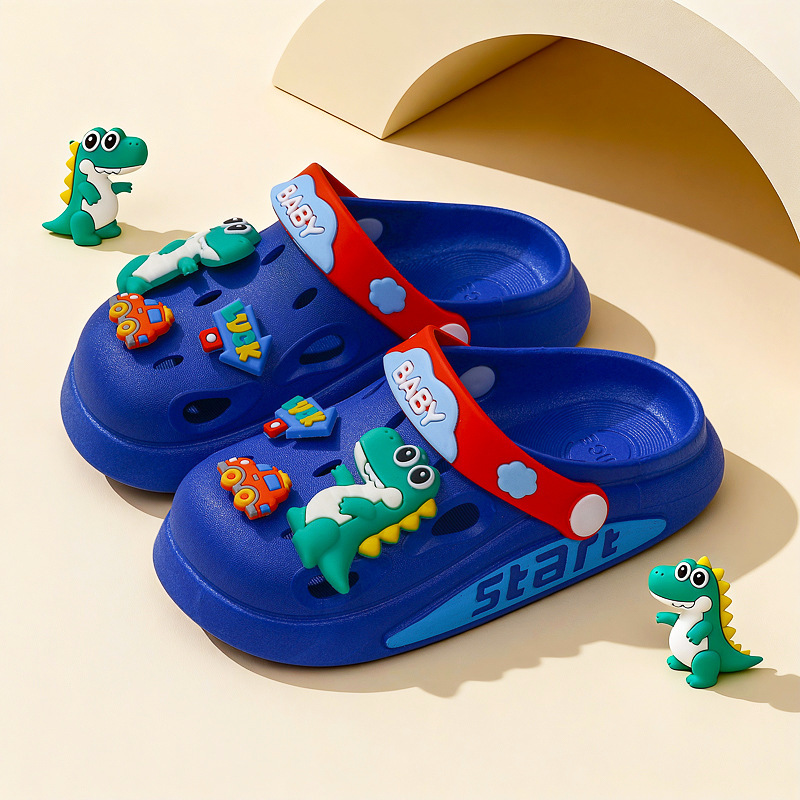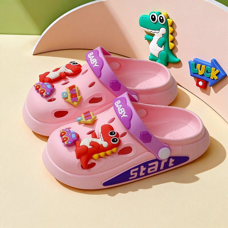 3-12 세 소년과 소녀를위한 여름 어린이 만화 구멍 슬리퍼 아기 공룡 미끄럼 방지 발가락 두 착용 어린이 슬리퍼