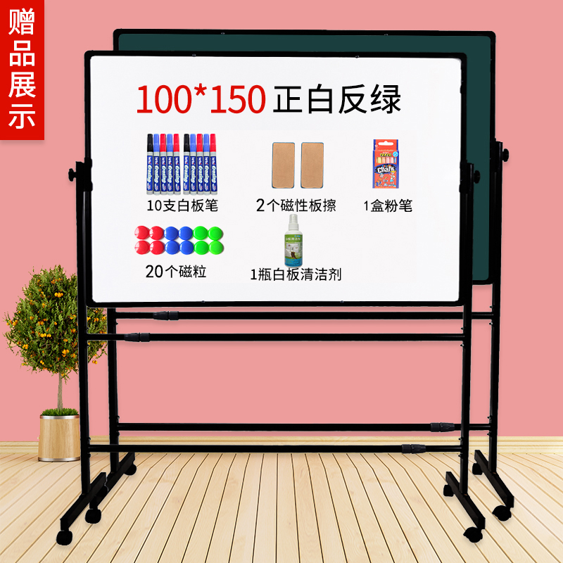 • [안정적인 타원형 강철 프레임 모델] 100*150 흰색 및 녹색 보드 + 검정색 타원형 튜브 브래킷 + 자석 12개 + 펜 10개 + 지우개 2개 + 분필 1상자 + 세제 1개 +