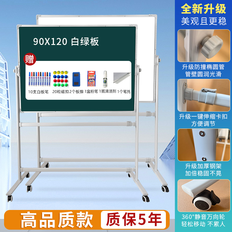 • [안정적인 타원형 강철 프레임 모델] 90*120 흰색 및 녹색 보드 + 검정색 타원형 튜브 브래킷 + 자석 12개 + 펜 10개 + 지우개 2개 + 분필 1상자 + 세제 1개 + 1개