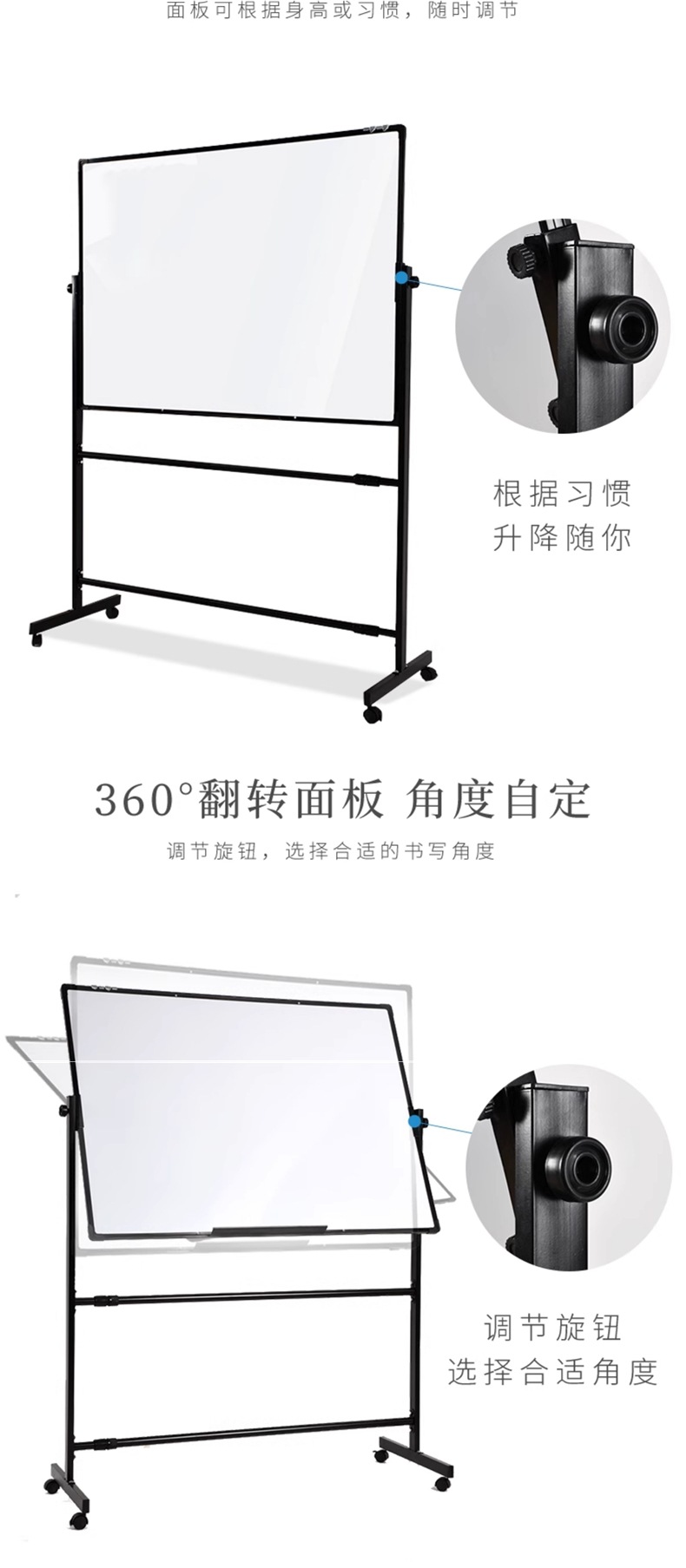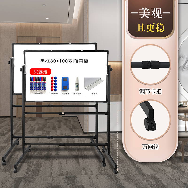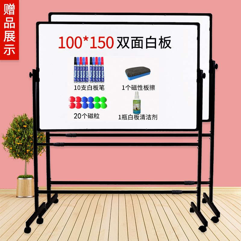 • [안정적인 타원형 스틸 프레임 모델] 100*150 더블 화이트보드 + 검정색 타원형 튜브 브래킷 + 자석 12개 + 펜 10개 + 지우개 1개 + 클리너 1개 + 펜 홀더 1개