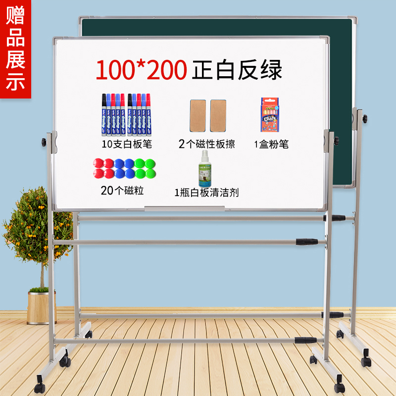 • [안정적인 타원형 강철 프레임 모델] 100*200 흰색 및 녹색 보드 + 은색 타원형 튜브 브래킷 + 자석 12개 + 펜 10개 + 지우개 2개 + 분필 1상자 + 클리너 1개 +