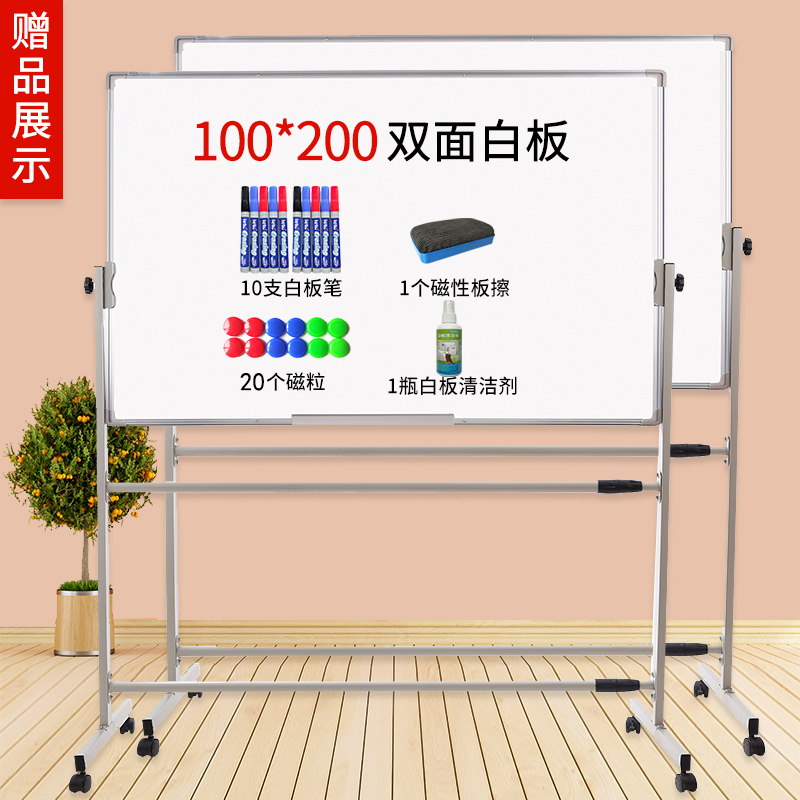 • [안정적인 타원형 강철 프레임 모델] 100*200 더블 화이트보드 + 실버 타원형 튜브 브래킷 + 자석 12개 + 펜 10개 + 지우개 1개 + 클리너 1개 + 펜 홀더 1개