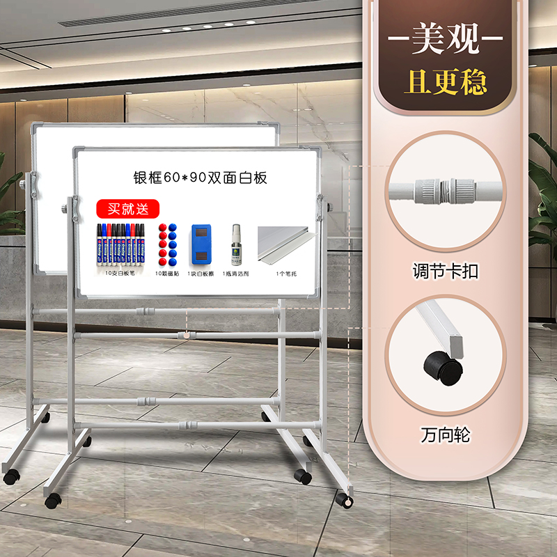 • [업그레이드된 이중극] 90*120 이중 화이트보드 + 실버 스탠드 + 자석 12개 + 펜 10개 + 지우개 1개 + 클리너 1개 + 펜 홀더 1개