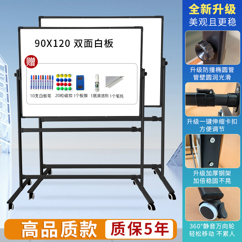 • [안정적인 타원형 강철 프레임 모델] 90*120 이중 화이트보드 + 검정색 타원형 튜브 브래킷 + 자석 12개 + 펜 10개 + 지우개 1개 + 클리너 1개 + 펜 홀더 1개