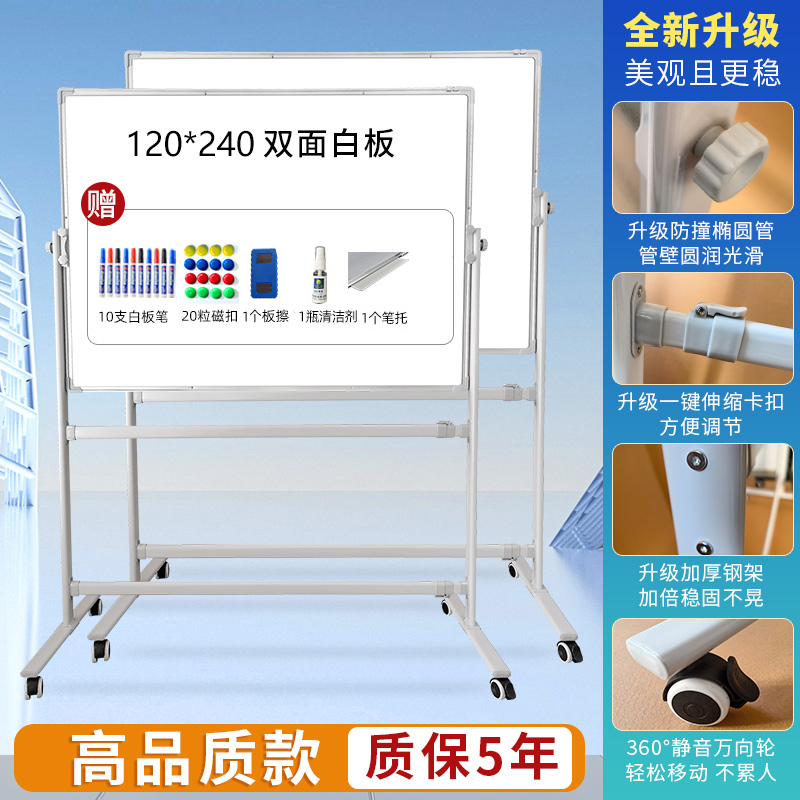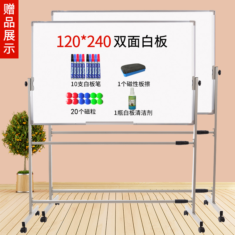• [안정적인 타원형 강철 프레임 모델] 120*240 더블 화이트보드 + 실버 타원형 튜브 브래킷 + 자석 12개 + 펜 10개 + 지우개 1개 + 클리너 1개 + 펜 홀더 1개