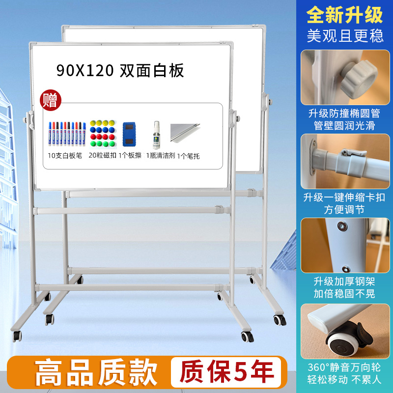 • [안정적인 타원형 강철 프레임 모델] 90*120 더블 화이트보드 + 실버 타원형 튜브 브래킷 + 자석 12개 + 펜 10개 + 지우개 1개 + 클리너 1개 + 펜 홀더 1개