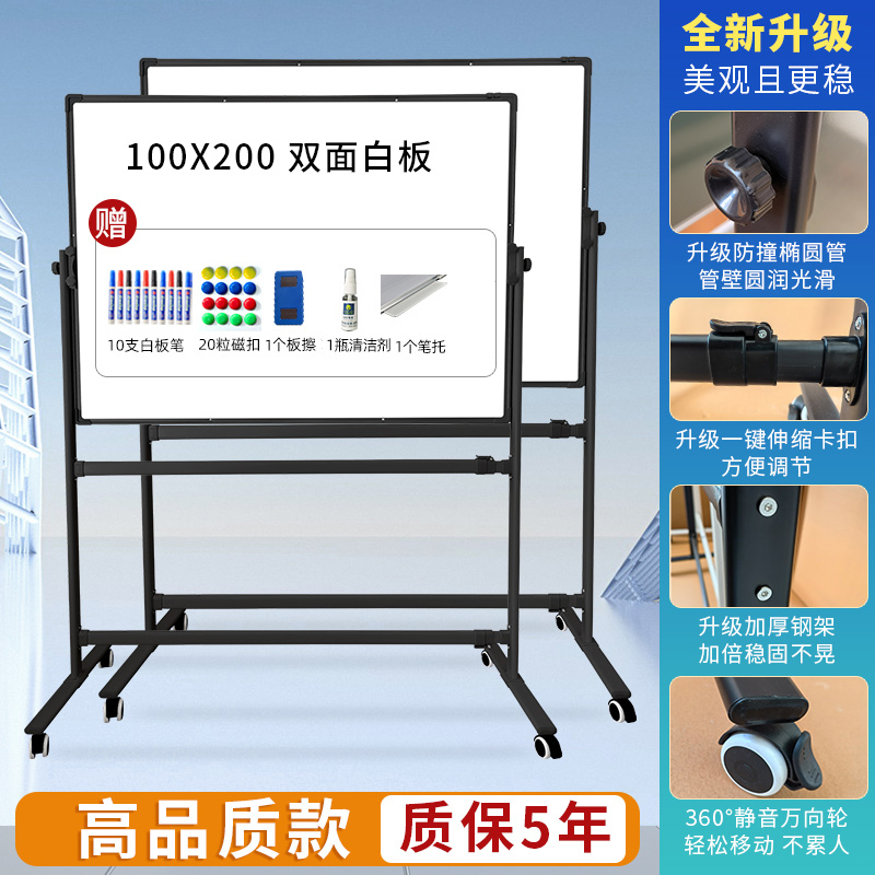• [업그레이드된 이중 극] 두꺼운 100*150 이중 화이트보드 + 검정색 스탠드 + 자석 12개 + 펜 10개 + 지우개 1개 + 클리너 1개 + 펜 홀더 1개