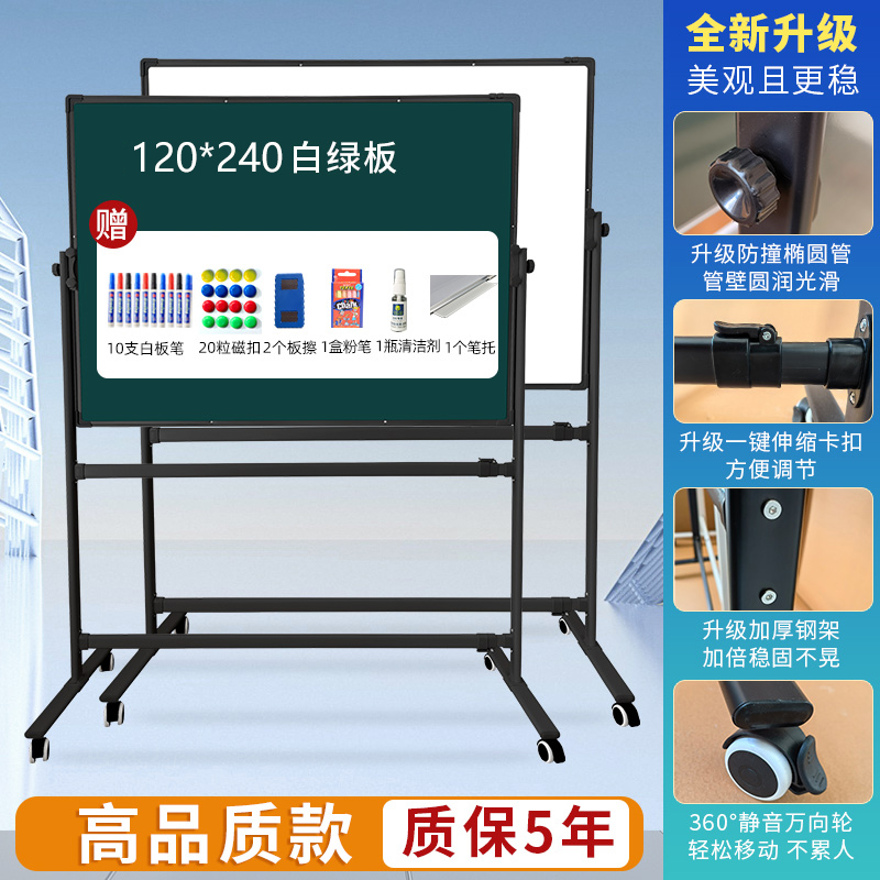 • [안정적인 타원형 강철 프레임 모델] 120*240 흰색 및 녹색 보드 + 검정색 타원형 튜브 브래킷 + 자석 12개 + 펜 10개 + 지우개 2개 + 분필 1상자 + 세제 1개 +