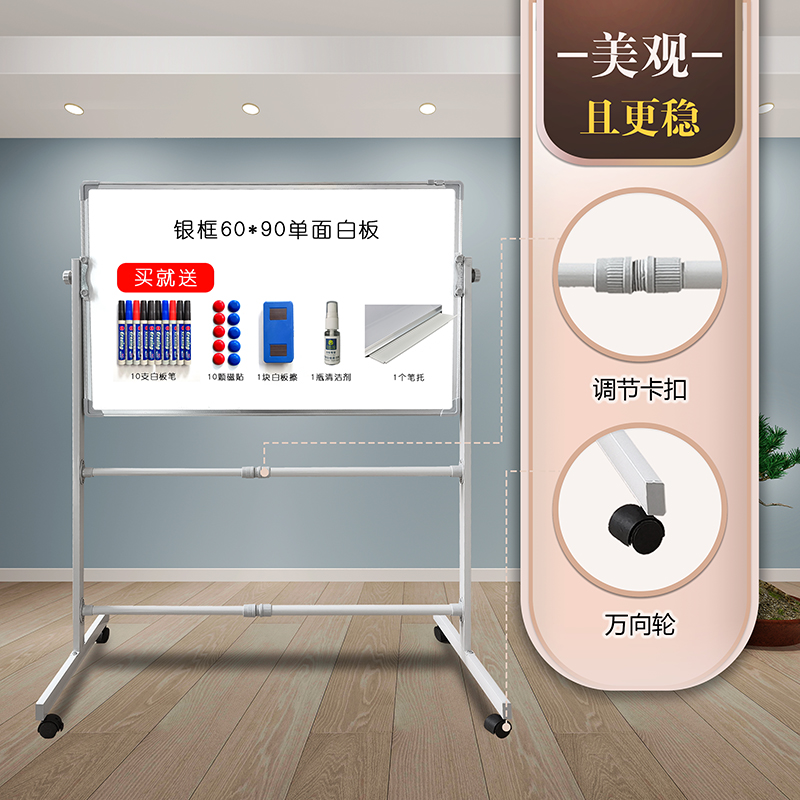 • [업그레이드된 이중극] 안정적인 60*90 단면 화이트보드 + 실버 스탠드 + 자석 12개 + 펜 10개 + 지우개 1개 + 클리너 1개 + 펜 홀더 1개