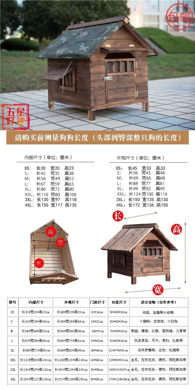 방수 및 방수 야외 단단한 나무 야외 대형 개 나무 개집 나무 따뜻한 개 케이지 개집 개집스토어 가기
