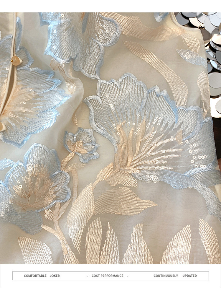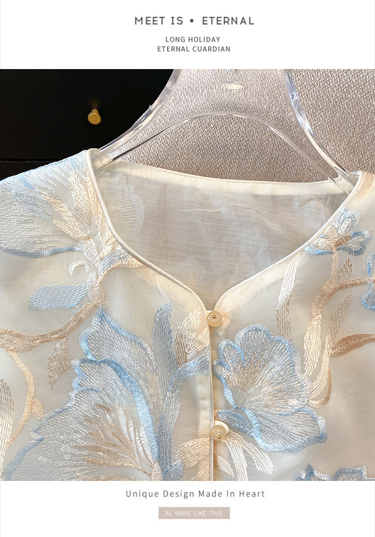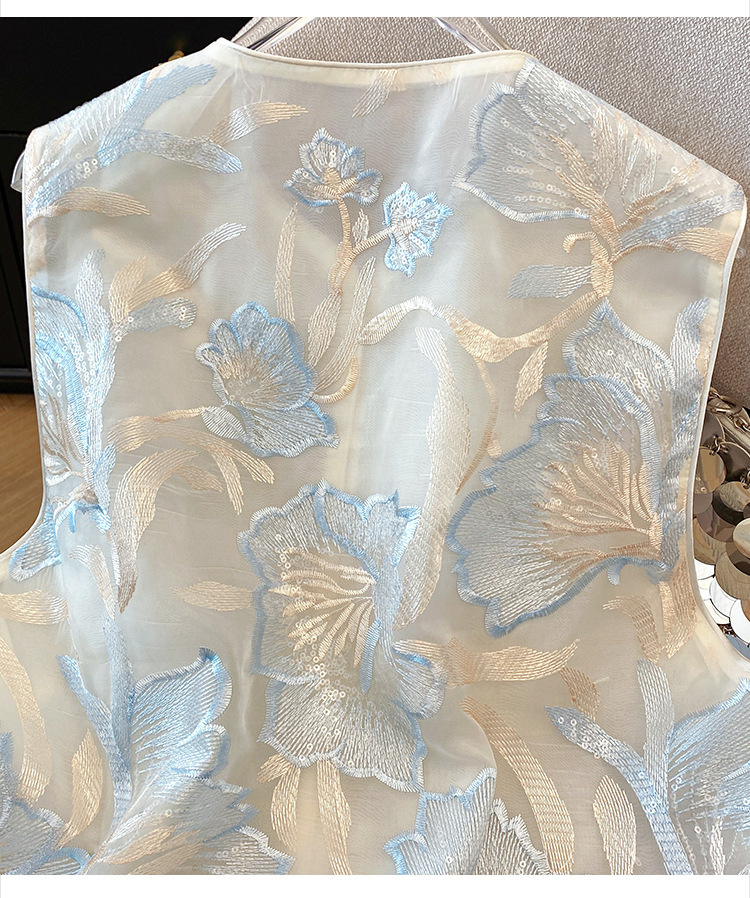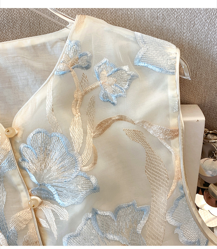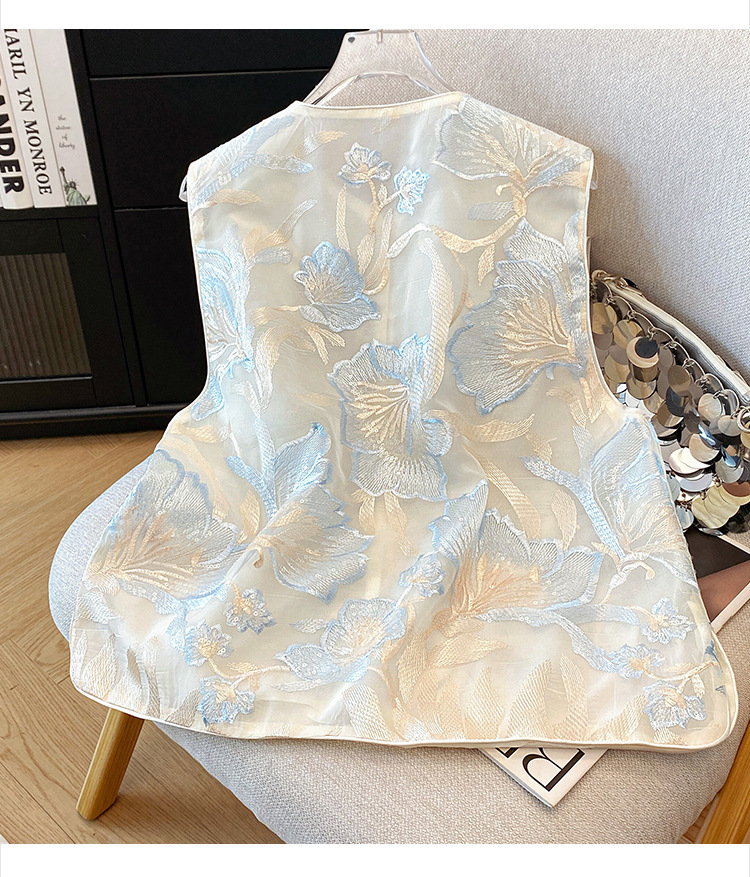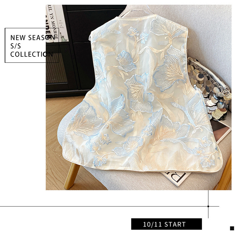 새로운 새로운 중국 스타일 조끼 젊은 스타일 봄과 여름 겉옷 여성의 가벼운 중국 스타일 자수 중공업 라운드 넥 조끼