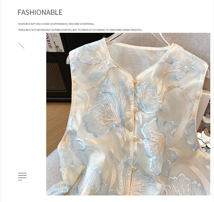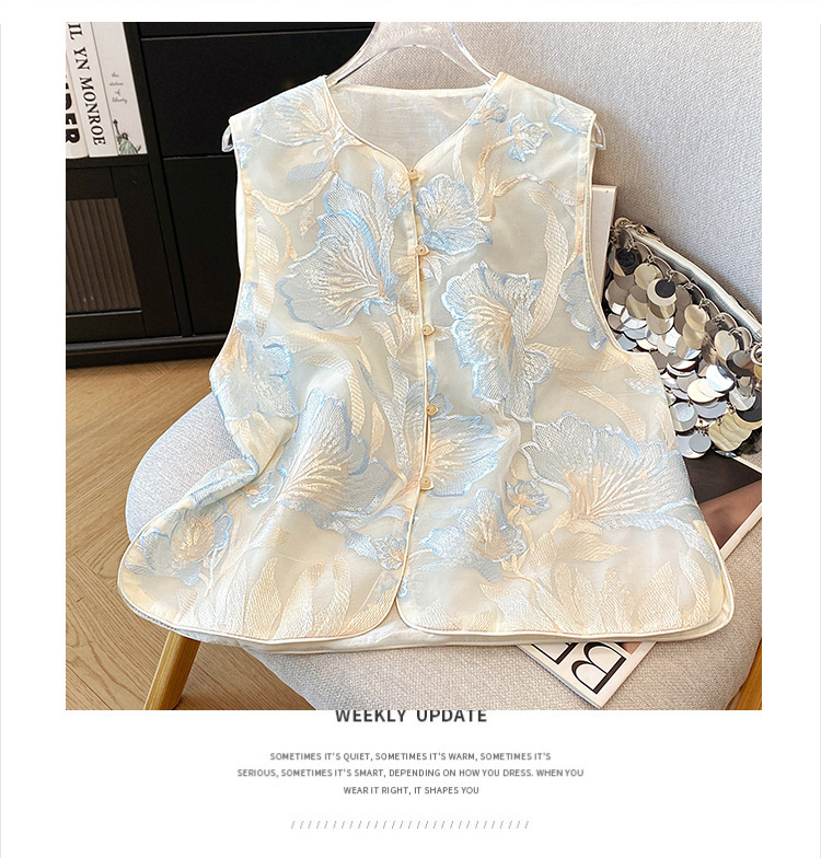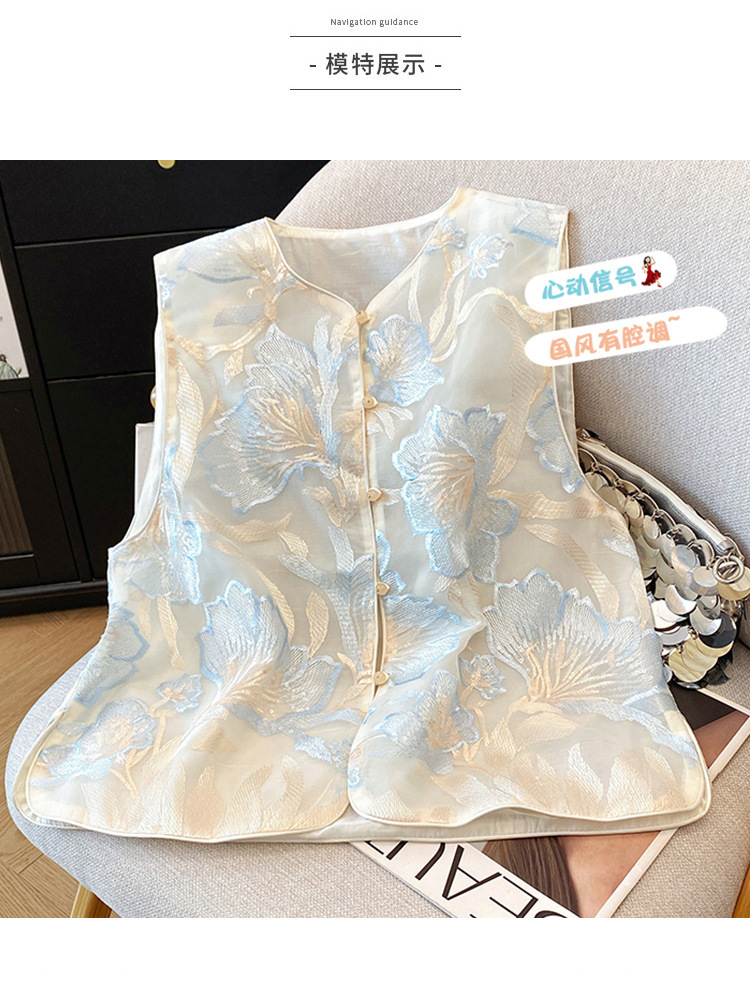 새로운 새로운 중국 스타일 조끼 젊은 스타일 봄과 여름 겉옷 여성의 가벼운 중국 스타일 자수 중공업 라운드 넥 조끼스토어 가기