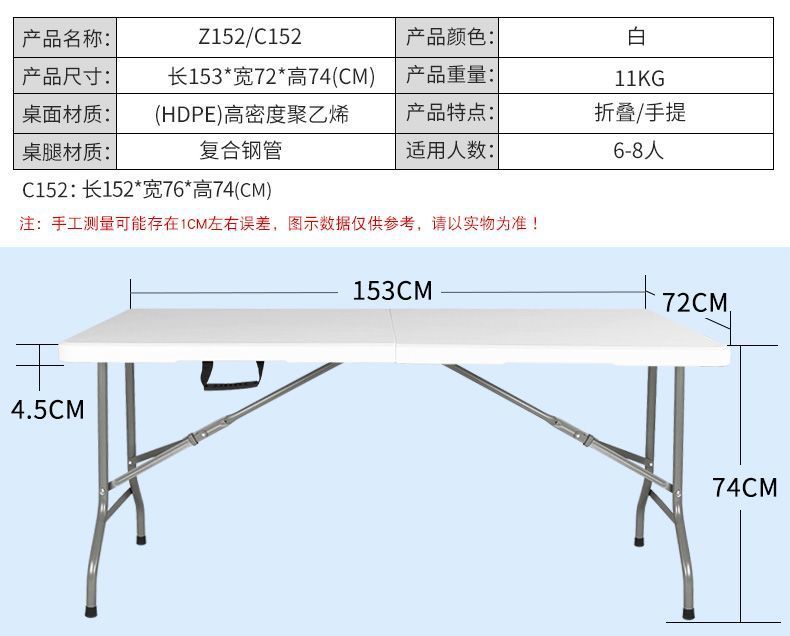 • 흔들리지 않는 슈퍼 내하중 [기간 한정 혜택 - Xinghe 카운터] - 흰색 강화 모델 1.2m + 등받이 의자 4개 - 접이식 및 리프팅 가능