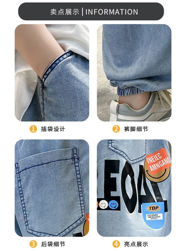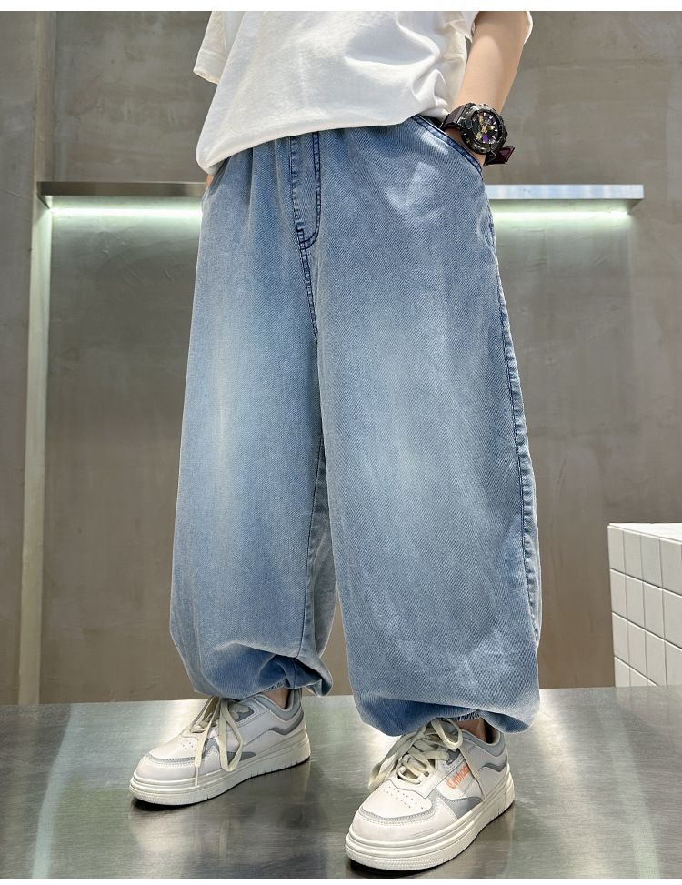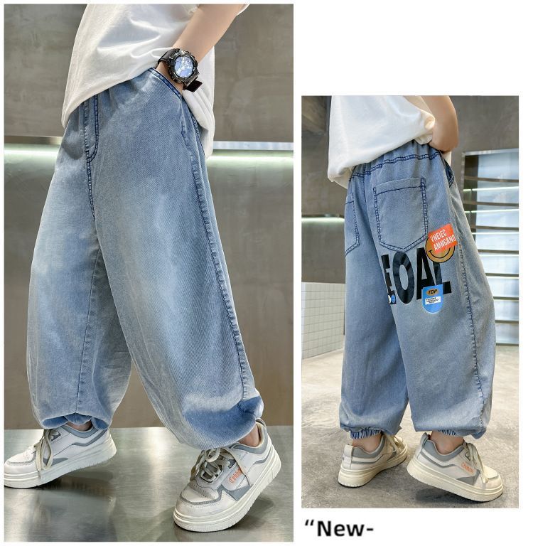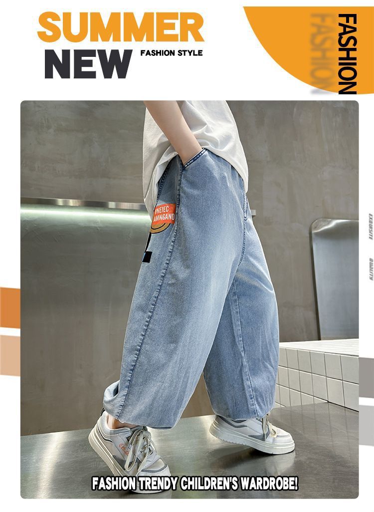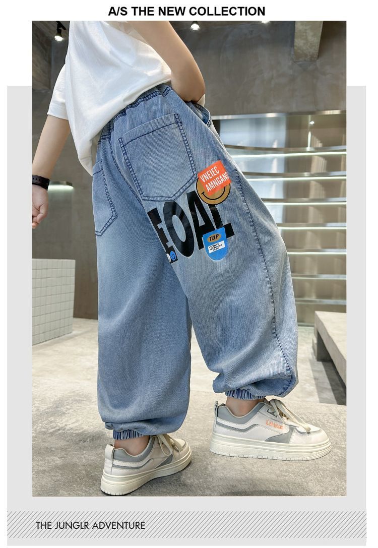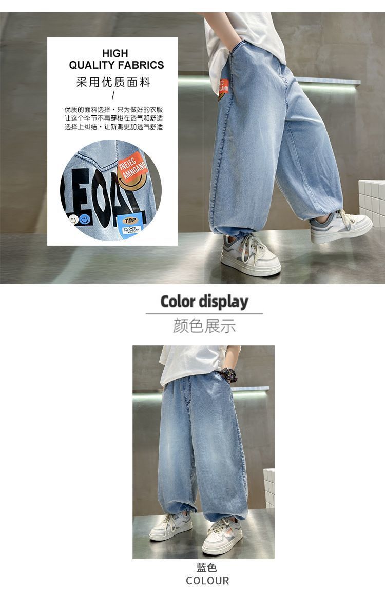 남아용 텐셀 데님 모기 방지 바지, 여름용 아우터, 중대형 아동용 캐주얼 긴바지, 남아용 여름 트렌디 얇은 바지스토어 가기