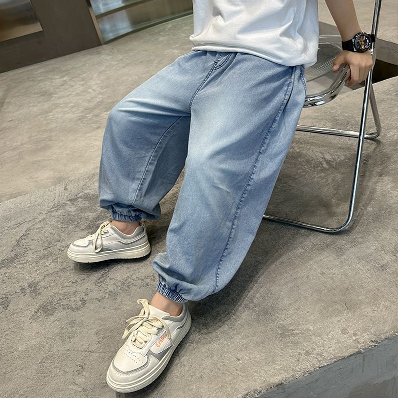 남아용 텐셀 데님 모기 방지 바지, 여름용 아우터, 중대형 아동용 캐주얼 긴바지, 남아용 여름 트렌디 얇은 바지