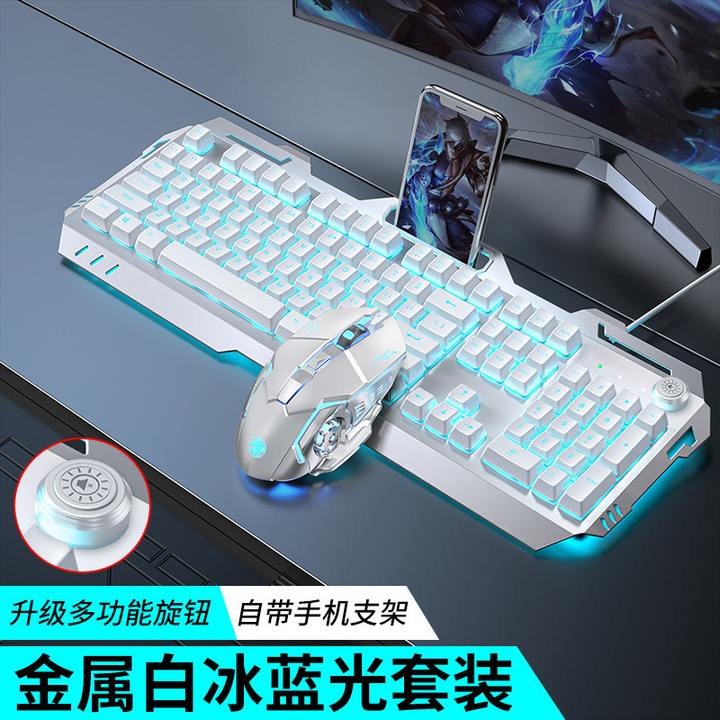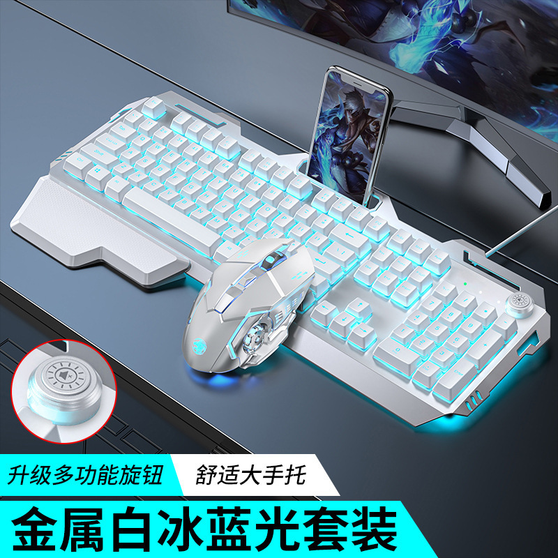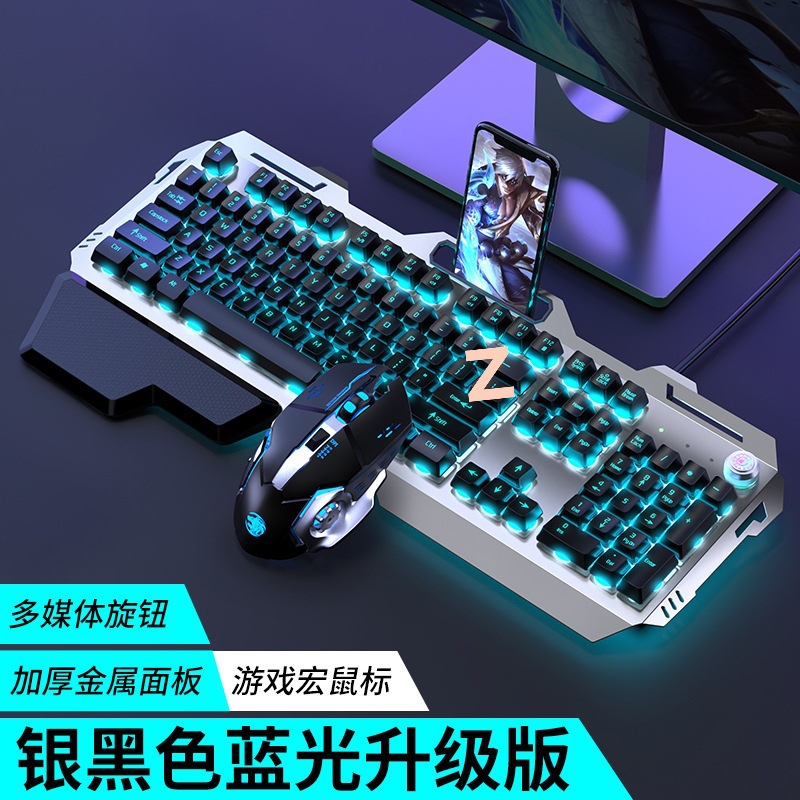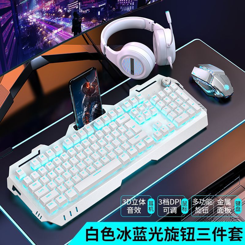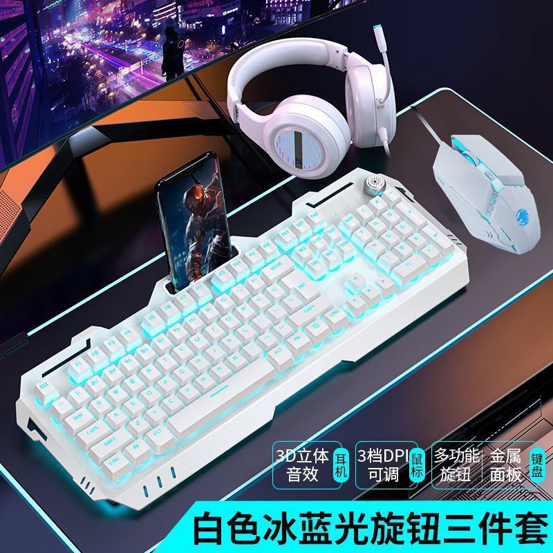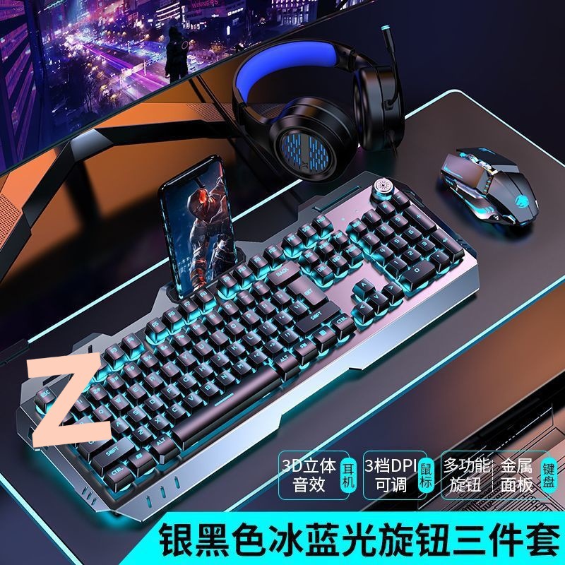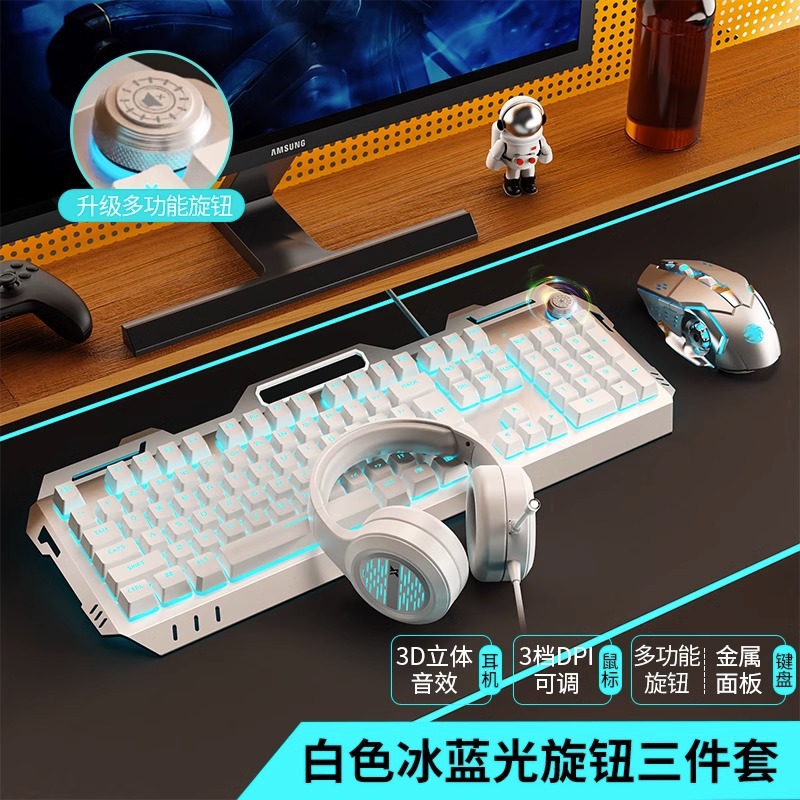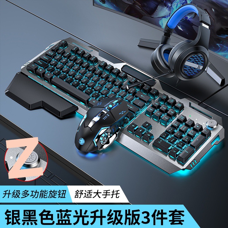 • 메탈 그레이 아이스 블루 라이트 핸드 레스트 버전 [유선 3종 세트 업그레이드 버전]_매크로 마우스_헤드폰