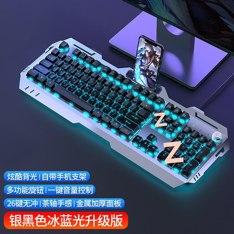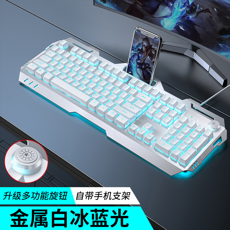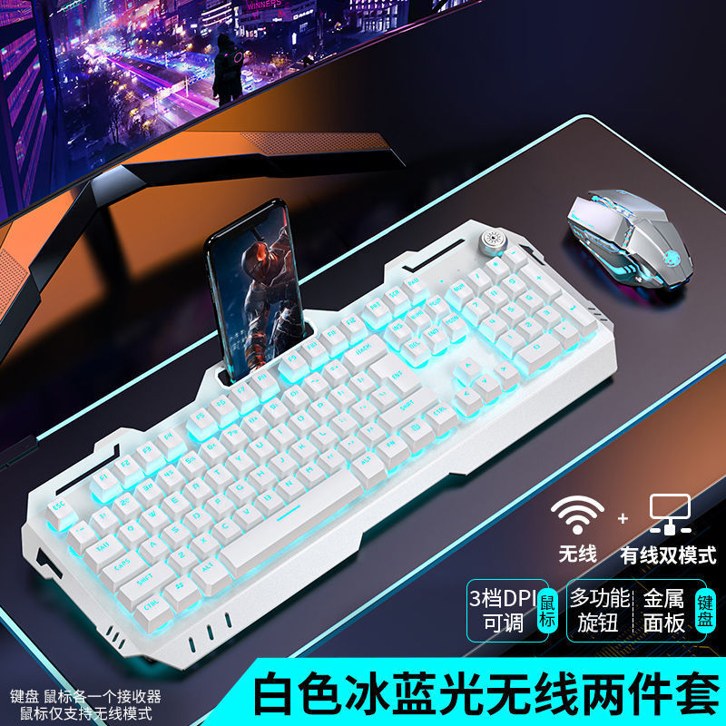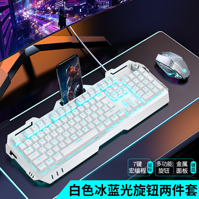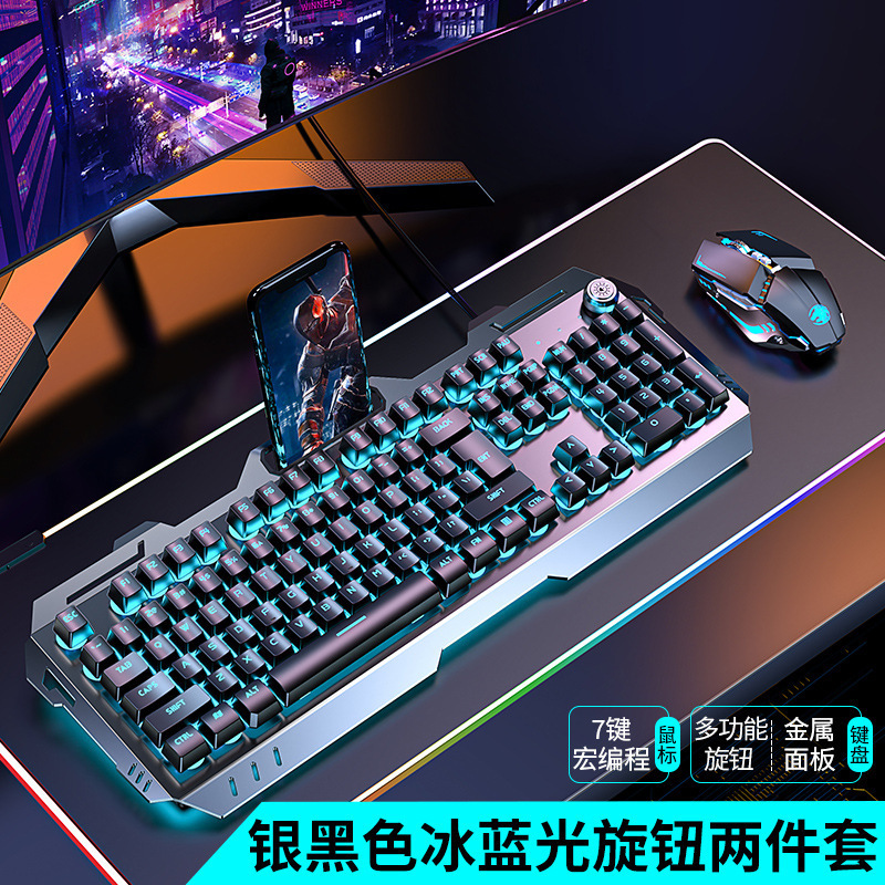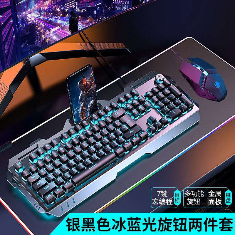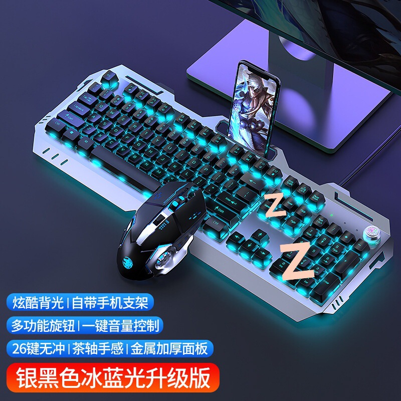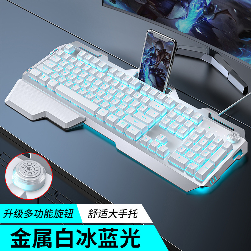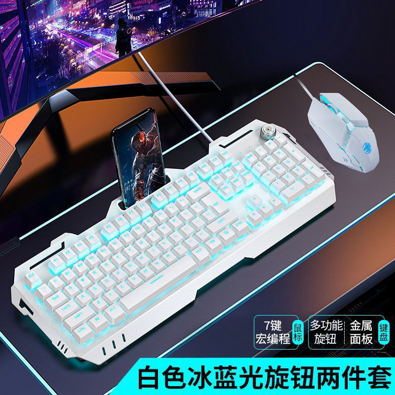 • 메탈 그레이 아이스 블루 라이트 핸드 레스트 버전 [유선 3종 세트 업그레이드 버전]_매크로 마우스_헤드폰