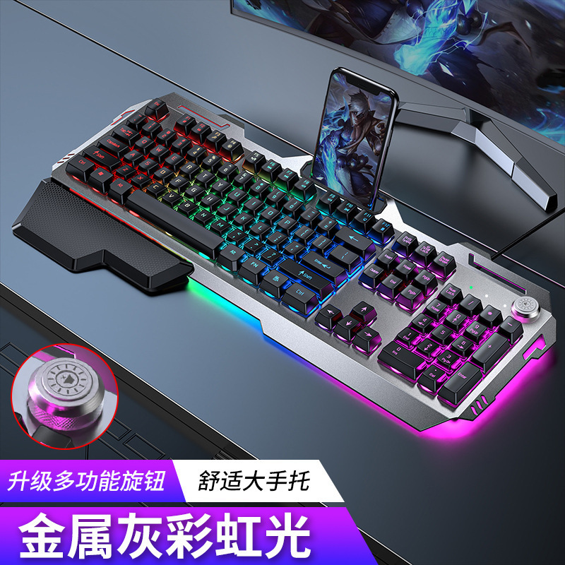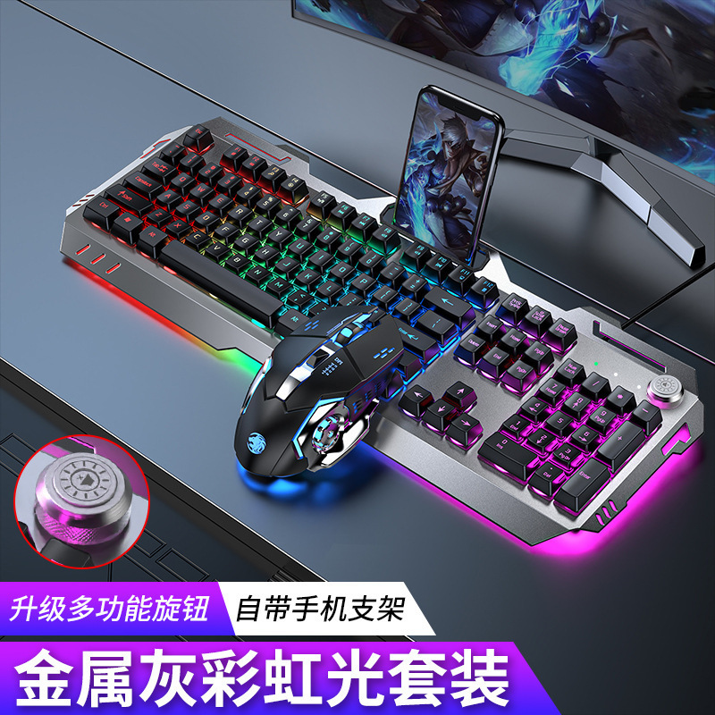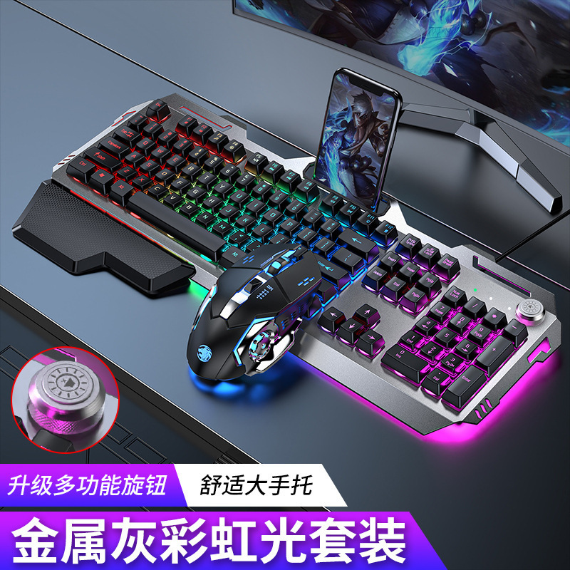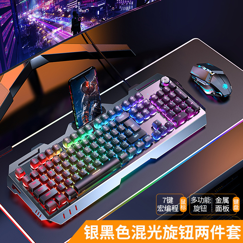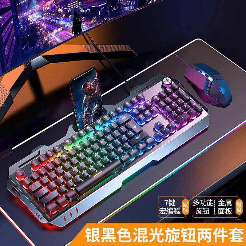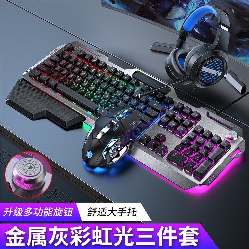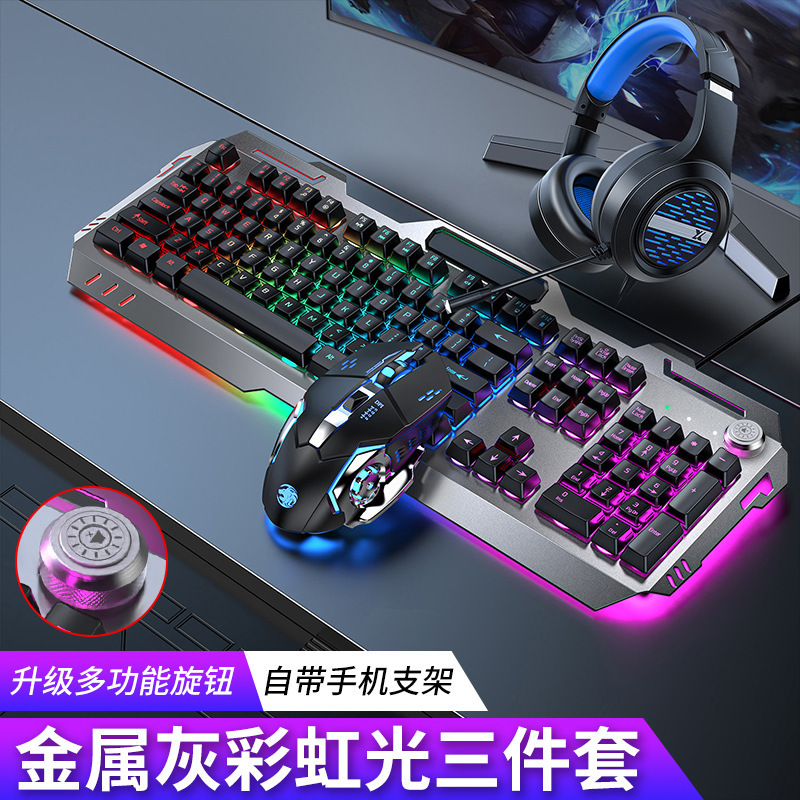 • 메탈릭 그레이 레인보우 라이트 [유선 손잡이 버전] + 게임 매크로 마우스 + 헤드폰
